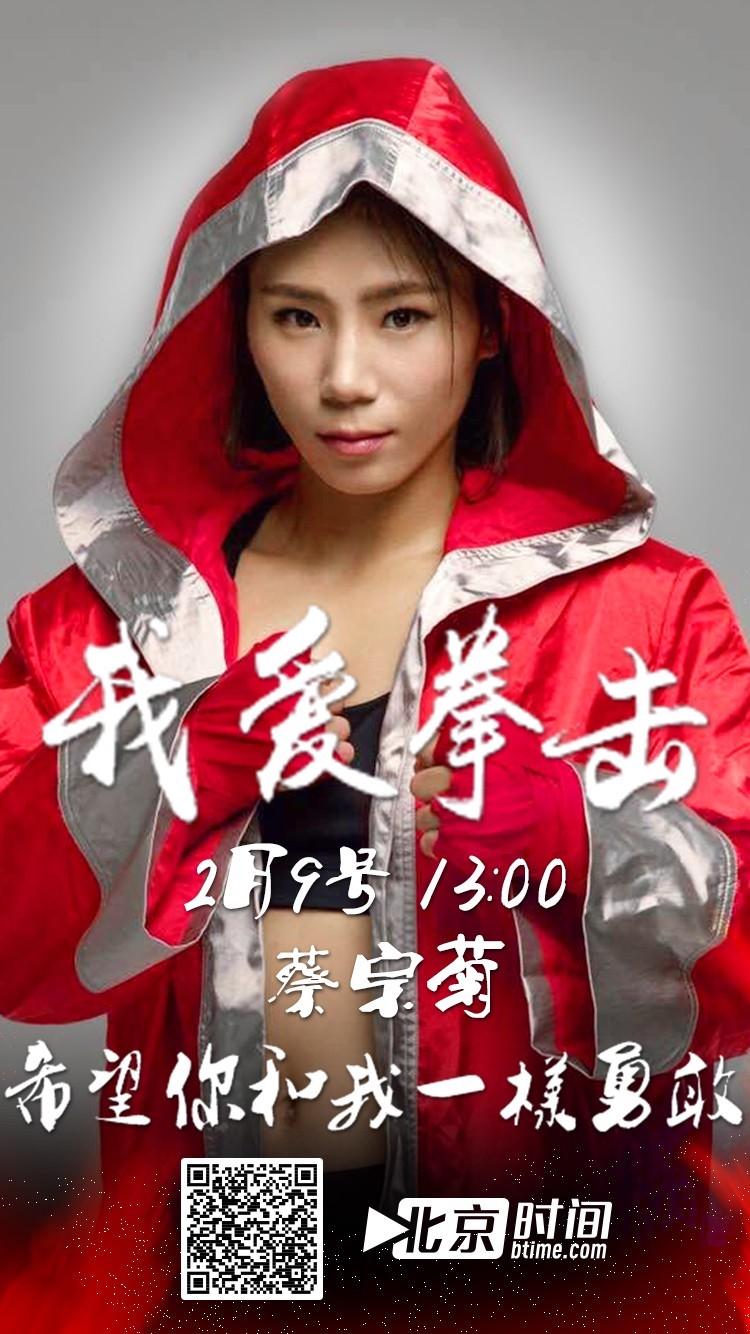 当记者让她对北京时间的网友们说一句话做结束语时,蔡宗菊说:“我爱拳击,希望你和我一样勇敢!”