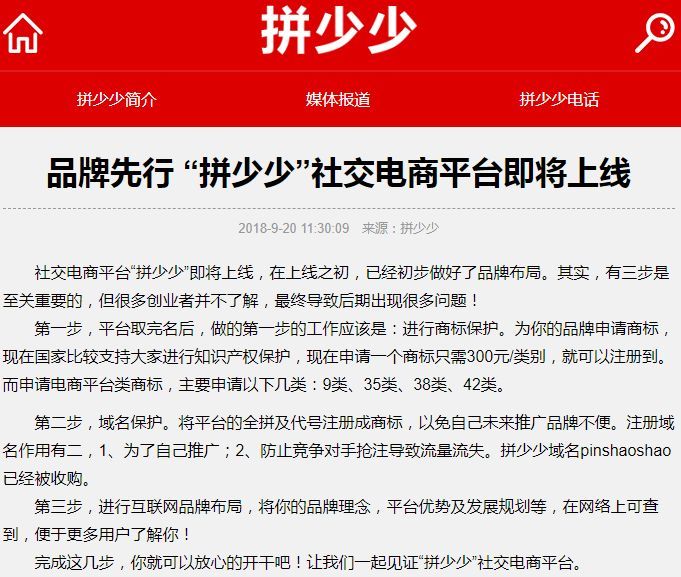 近日,多家媒体报道一个名为“拼少少”的社交电商平台。这家甚至注册的公司与拼多多一样定位社交电商,注册了个品牌的“拼少少”商标、注册多个相关域名。从品牌logo设计到营销宣传文章,都极易令人联想到拼多多。