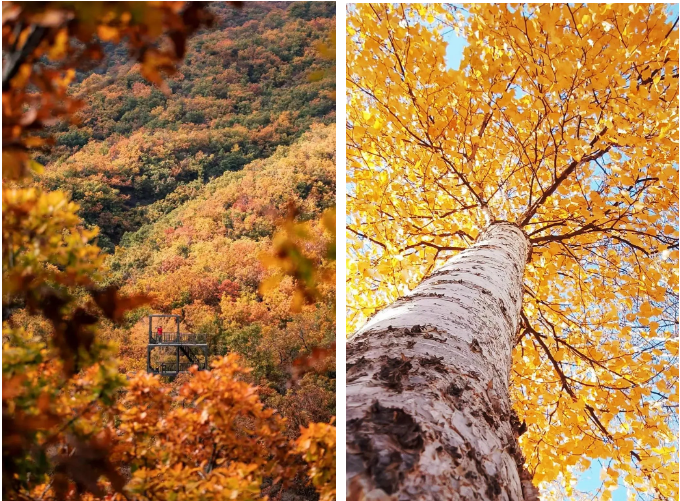 (4)最美红叶林穿行区:位于北四楼便道红叶丛林区。