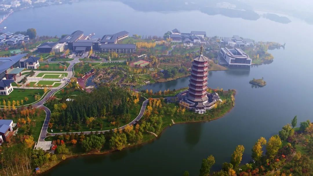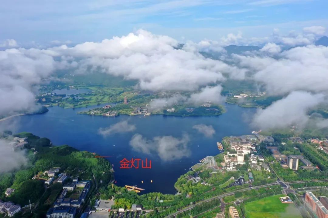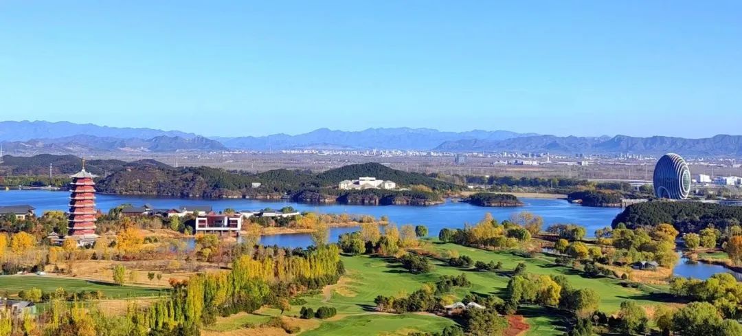 雁栖湖三面环山,群山环亘,重峦叠嶂