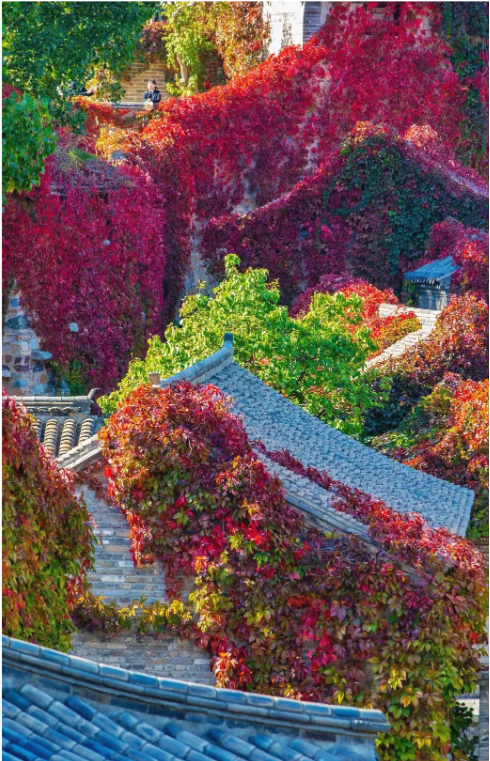 山地合院鳞次栉比,五叶地锦斑斓梦幻