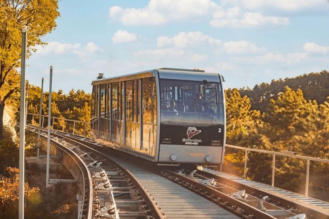 乘坐八达岭长城北索道,直达八达岭长城最高楼——北八楼“好汉坡”,观赏红叶漫山的盛景;或是乘坐地面缆车穿行红叶间。
