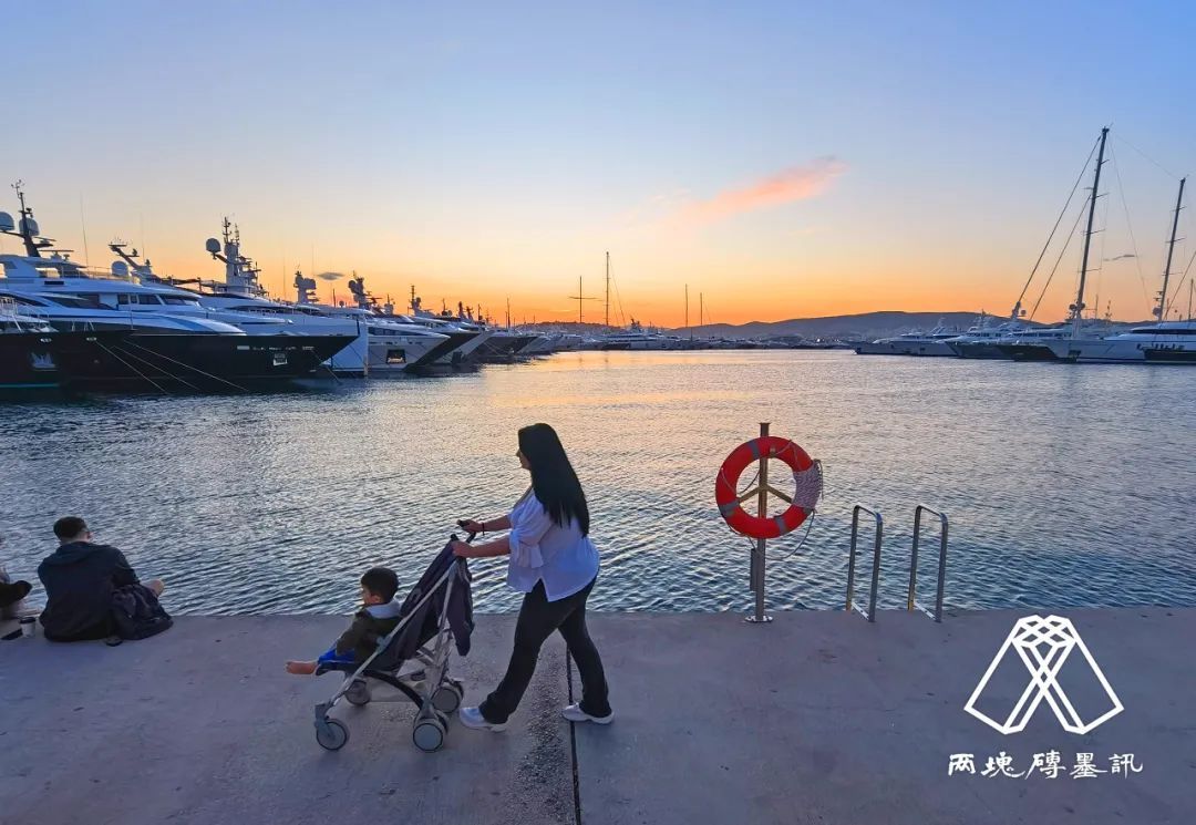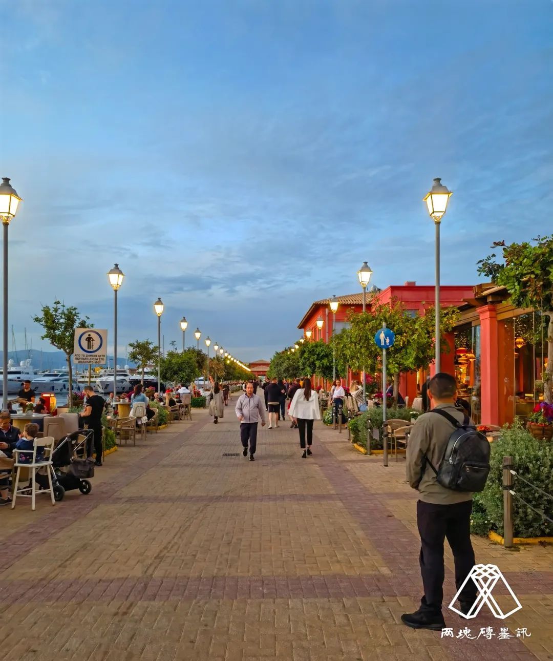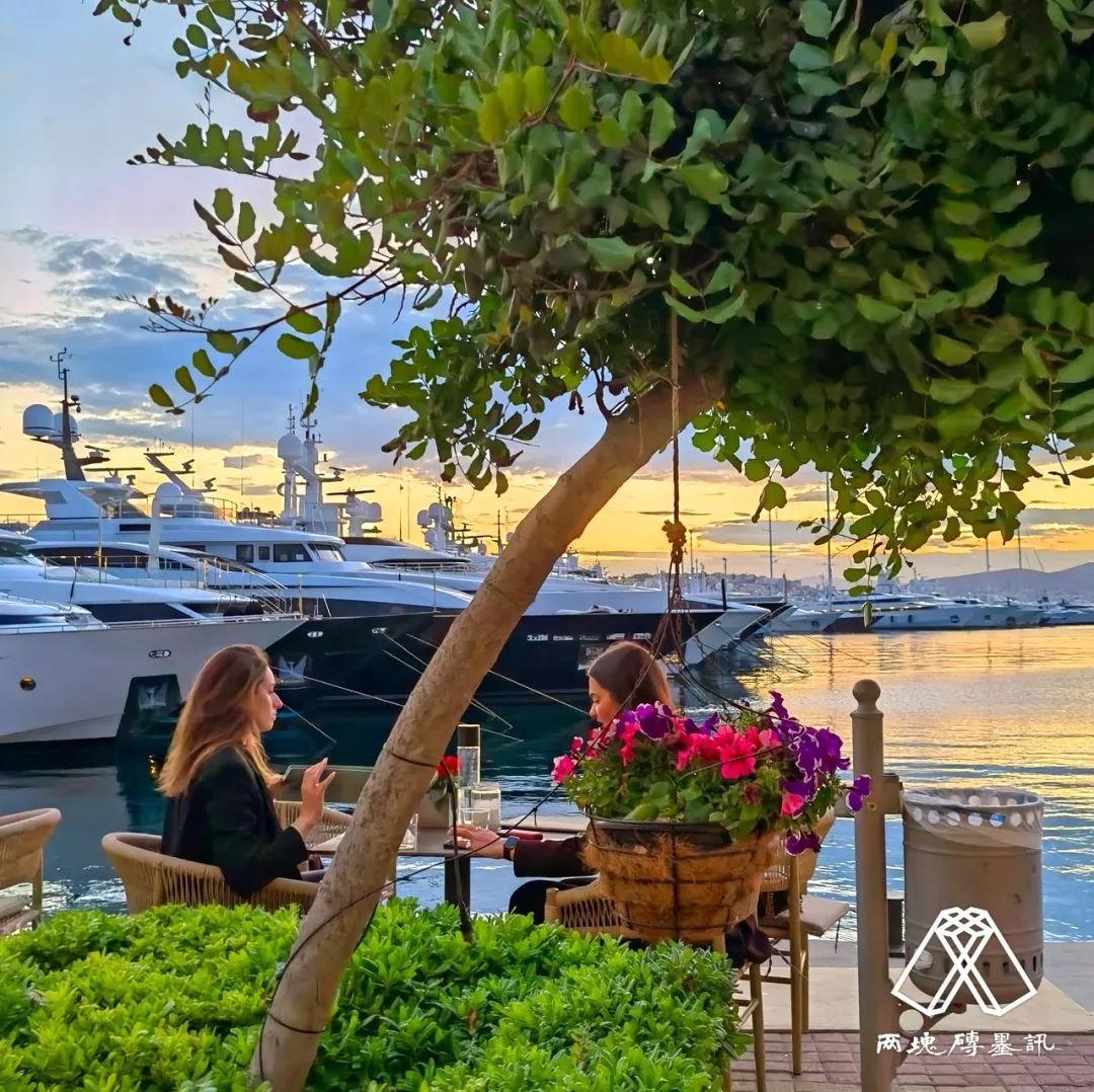 在游艇码头晚餐,夕阳西下,水面流光溢彩。鸥鹭翔集,花红树绿,一派和平景象。有三位少女说笑着从面前走过,用手机拍了她们,真美啊。