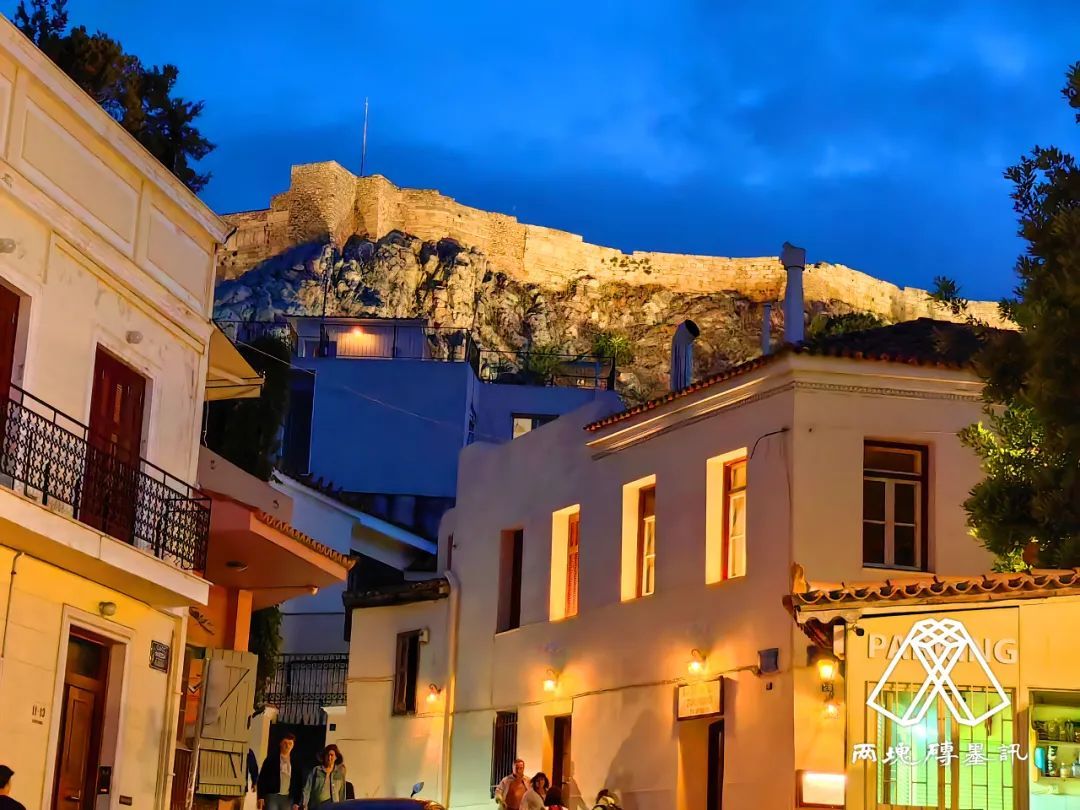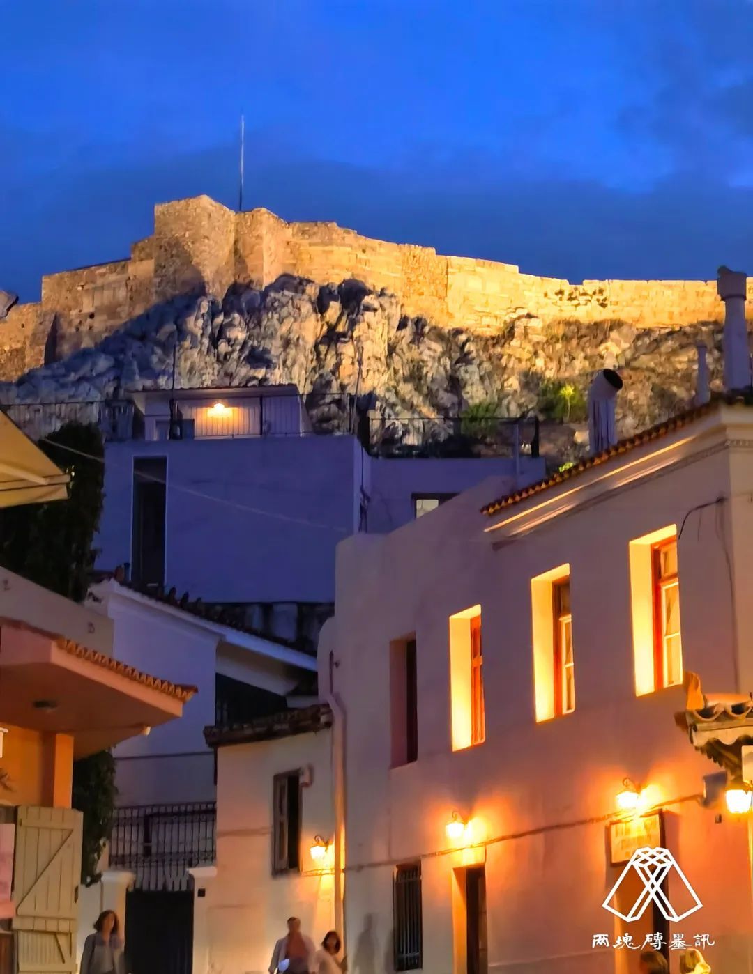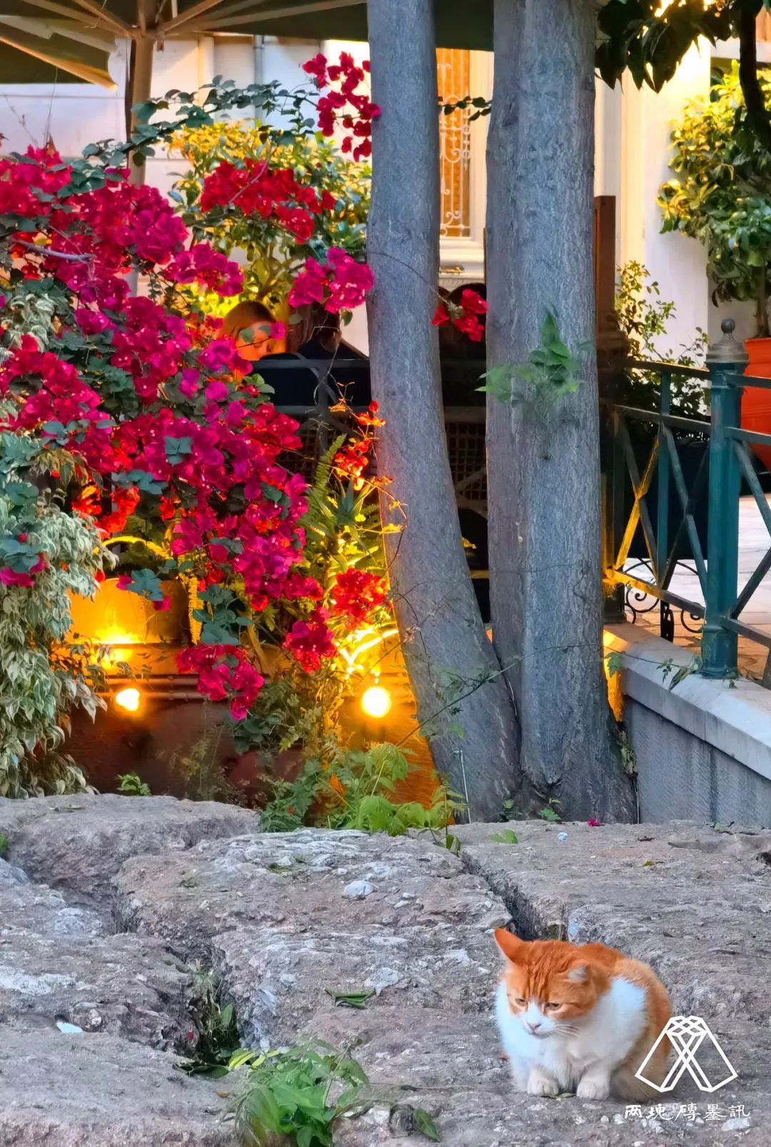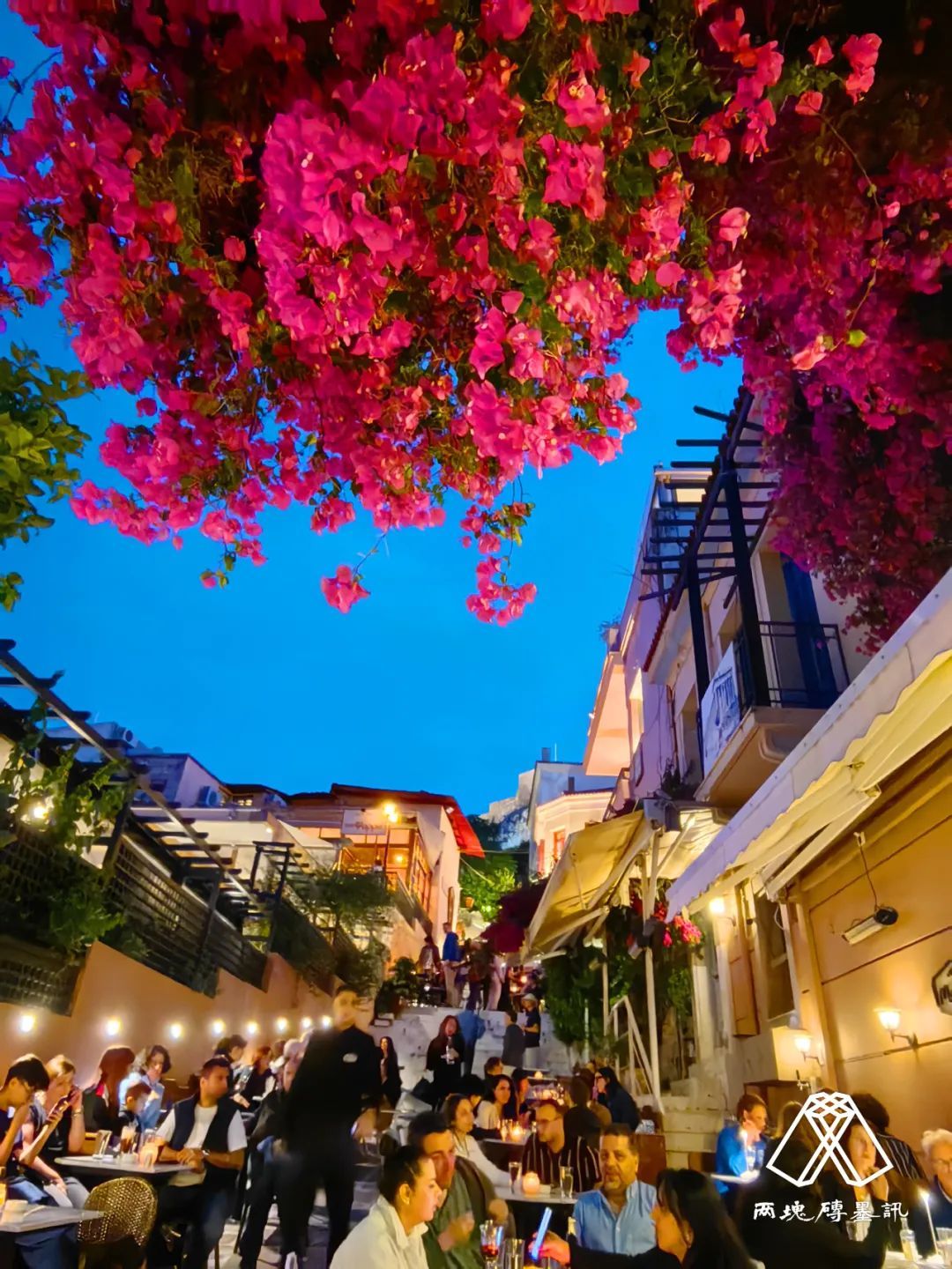 到希腊的第二天晚上,在一家餐馆吃饭。这家餐馆门前有一蓬三角梅,在灯光照耀下格外艳丽,如同熊熊燃烧的烈焰。