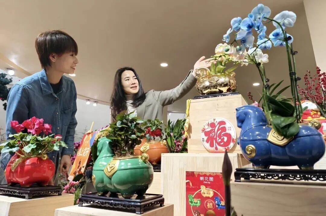 复刻“花马驮春”意象的“五花马”文创花器;由蝴蝶兰组合成的奔腾骏马;“剪纸马”版的“注定红”……丰台的北京花卉交易中心,不少年宵花的创意从“马”上而来,备受市民喜爱。