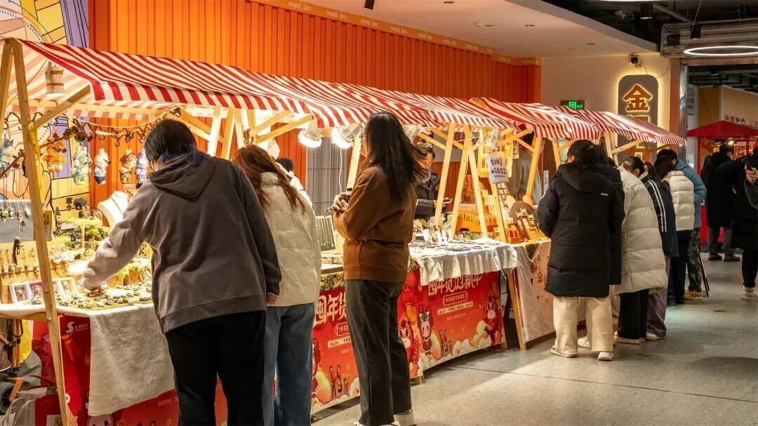 在中关村壹号最美食堂,一场年货大集正在进行。本次大集汇聚超过20家知名商户与特色摊主,涵盖非遗手作、精品年货礼盒、节庆百货等丰富品类。