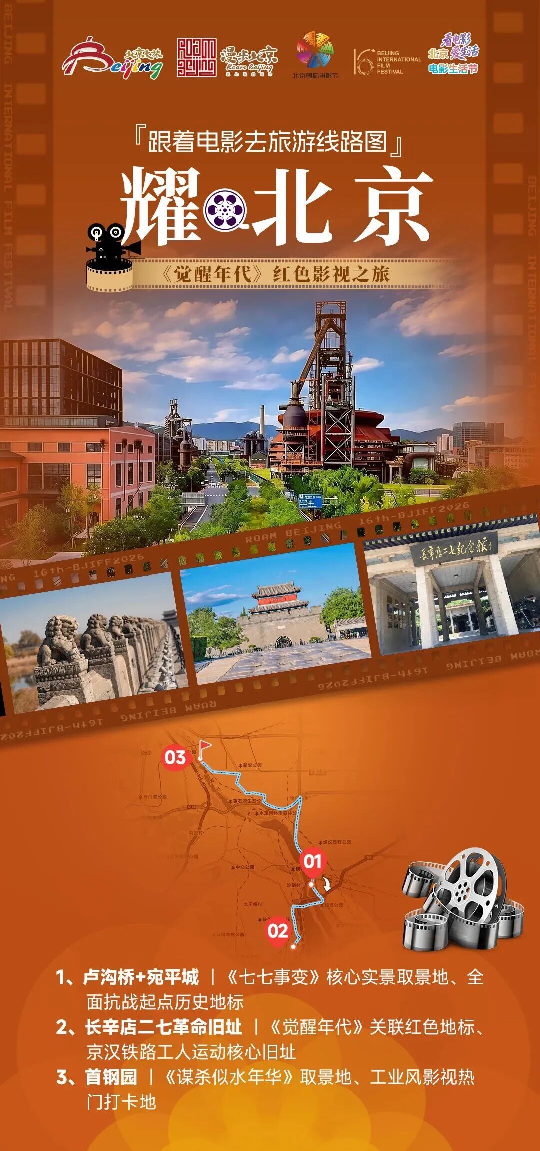 ✨线路解说:这条红色光影线路串联京城三大红色文旅地标,沉浸式重温家国史诗。驻足卢沟桥与宛平城,触摸《七七事变》的历史印记,感受民族抗争的铮铮铁骨和燃情烽火;探访长辛店二七革命纪念馆,追寻《觉醒年代》先辈足迹,感悟早期革命的热血信仰;漫步首钢园,在百年工业遗址中打卡《谋杀似水年华》同款场景,让青春记忆与光影记忆交织。