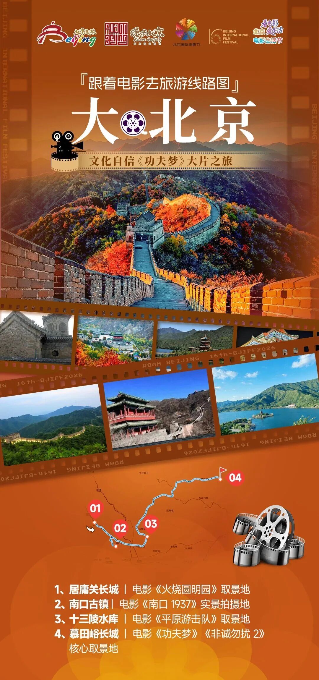 ✨线路解说:从居庸关长城出发,追寻《火烧圆明园》的历史印记,感受雄关承载的百年沧桑;走进南口古镇,回望《南口1937》的烽火岁月,致敬抗战先辈的热血坚守;途经十三陵水库,邂逅《平原游击队》的经典红色记忆;最终抵达慕田峪长城,在《功夫梦》的励志特训地感受成长力量,在《非诚勿扰2》的浪漫取景地邂逅温情诗意,一站式解锁大北京的影视传奇与山河盛景。