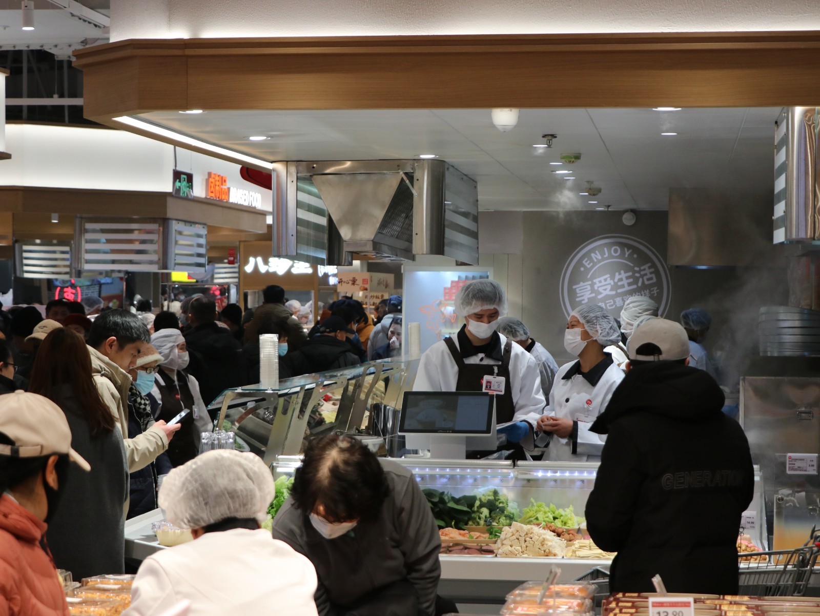您能想象炒菜声、烧烤声、榨汁声,并非来自餐馆或食堂,而是一家超市吗?近日,永辉超市在北京的最后一家调改店——“北京龙湖长楹天街店”焕新亮相。门店创新地将小碗菜、小吃、熟食等档口整合为“美食一条街”,并毗邻设置就餐区。