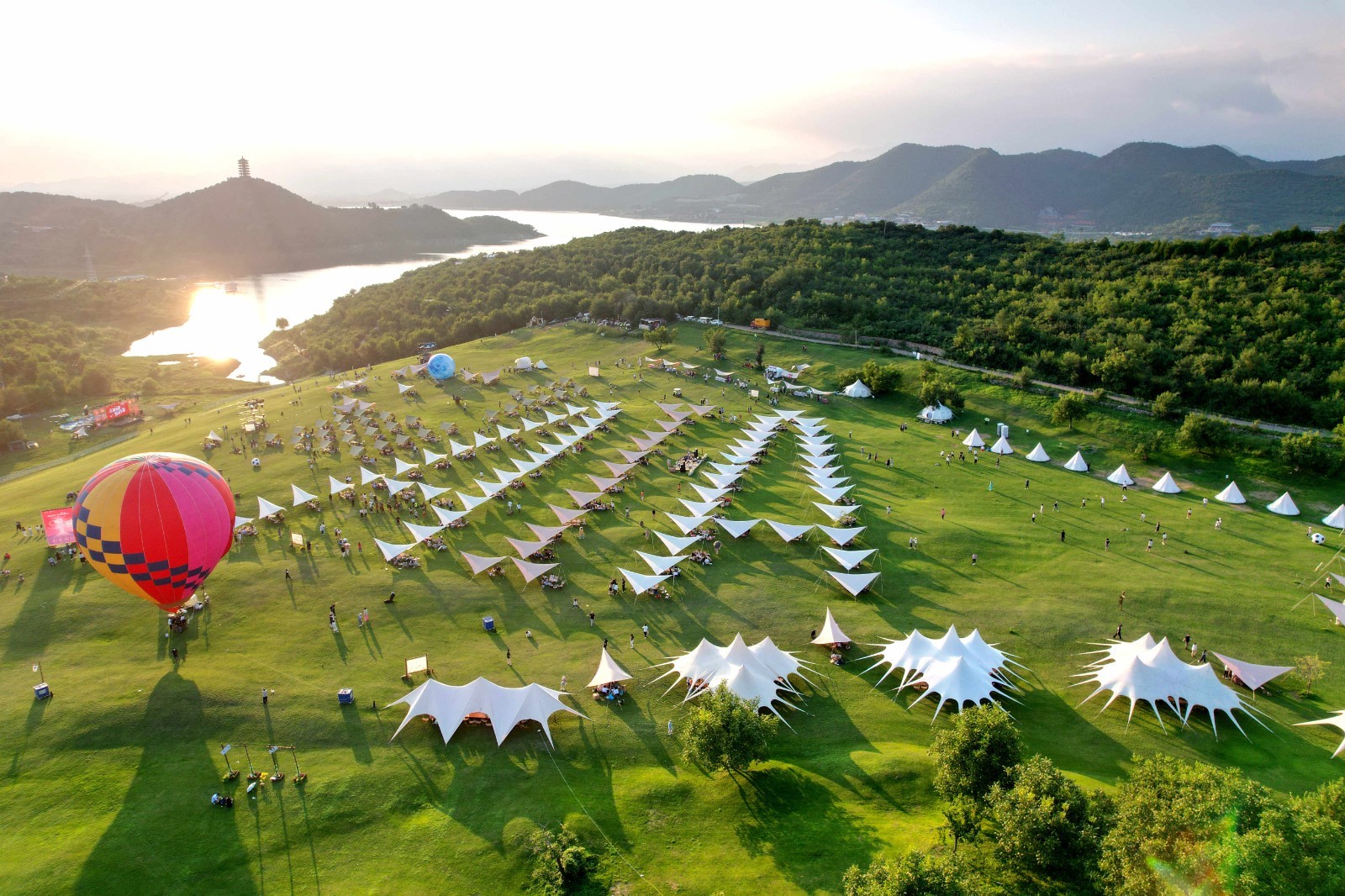 如果说湖畔耕读园和桃源里代表了平谷“农文旅”融合的成熟样本,那么金海湖的露营地则代表了平谷“休闲度假”的全新想象力。金海湖碧波岛,被网友称为“京郊小瑞士”,拥有超30万平方米的草坪可供露营。荒野7号大溪水亲子营地,占地广阔,草坪区达240亩,拥有15万平方米高尔夫球场级优质草坪,起伏的草坪、层峦的山景、金色的湖景与历史佛光塔交相辉映。黑糖小镇和暮野星空CLUB营地老板刘艳就是金海湖本地人,她回乡创业不仅将两大荒地打造成露营营地,还顺便促进了当地村民就业致富和带活了当地经济。