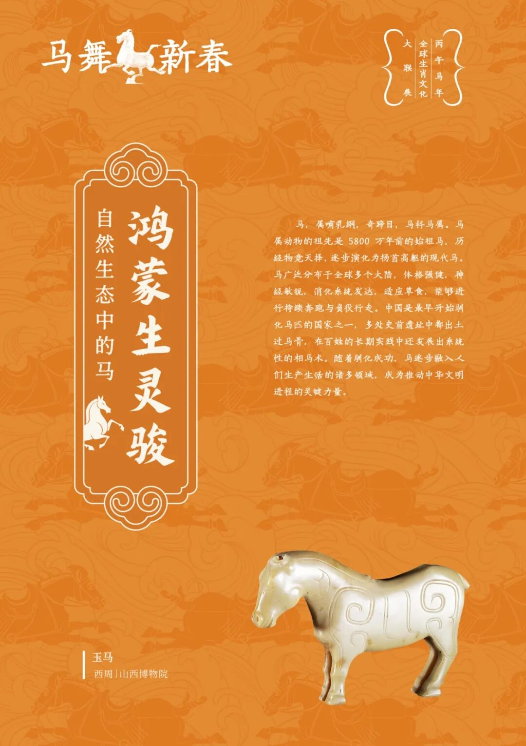 驯马、牧马、乘马、役马、驭马、市马、娱马,华夏先民在与马的长期互动中,赞其力量与速度,感其忠诚与勇气,羡其自由与奔放,沉淀出独具特色的马文化。马的形象也开始广泛出现在各类器物中,铜液浇筑奔马之雄姿,釉彩描绘骏马之灵动,金银錾刻天马之华贵,玉石雕琢良驹之温润,栩栩如生,如见其形,如闻其声。