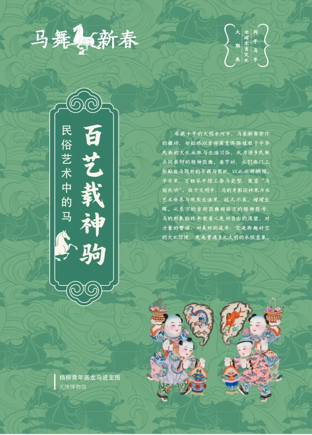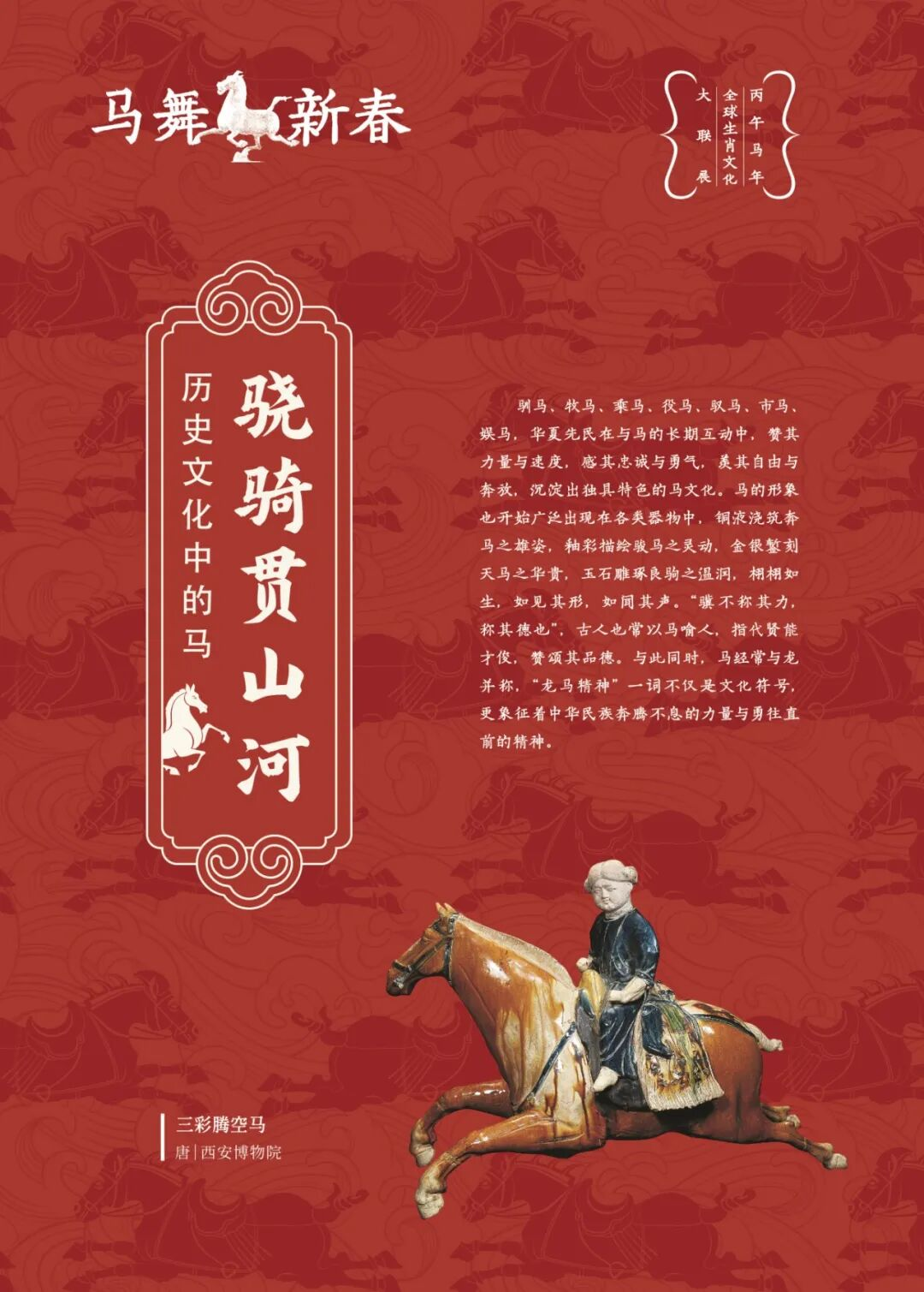 近日,在国家文物局的指导下,中国妇女儿童博物馆携手中国文物报社、国家自然博物馆等生肖文化传播联盟,精选200余幅“马”题材文物艺术品映像,共同推出“马舞新春——丙午马年全球生肖文化大联展”。今天,丹丹邀您来到中国妇女儿童博物馆,步入展厅,在“马舞新春”的浓厚文化氛围中,度过一个欢乐祥和的中国年!