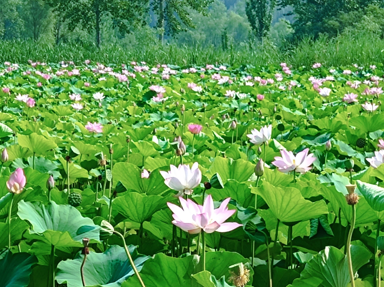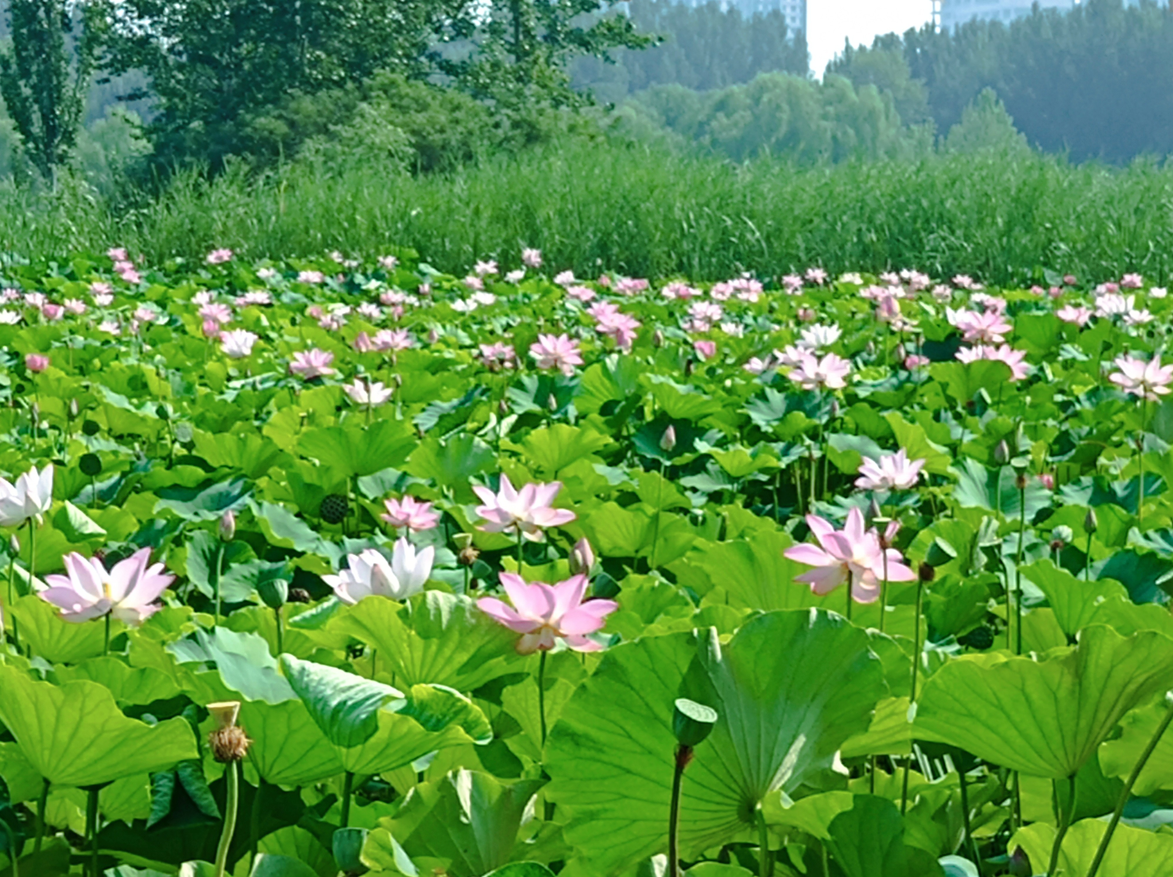 未来科学城滨水公园荷花种植面积约1万平方米,荷花花期将持续至8月下旬左右。