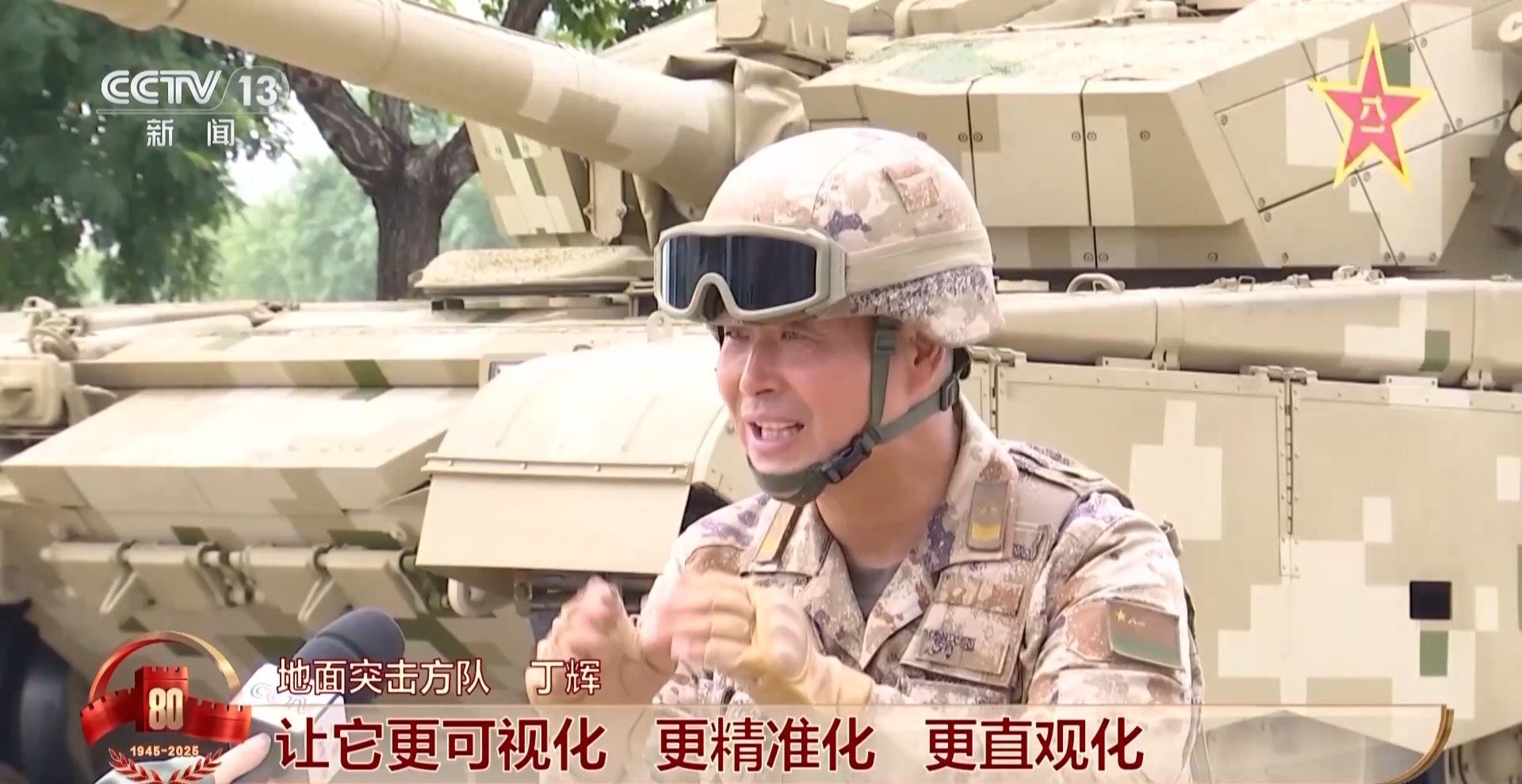 地面突击方队 丁辉:让它更可视化、更精准化、更直观化。比如说这次阅兵,我们的战斗员戴的智能头盔,现在走在什么位置、速度是多少、偏没偏移,里边一目了然,也是一个新的突破。