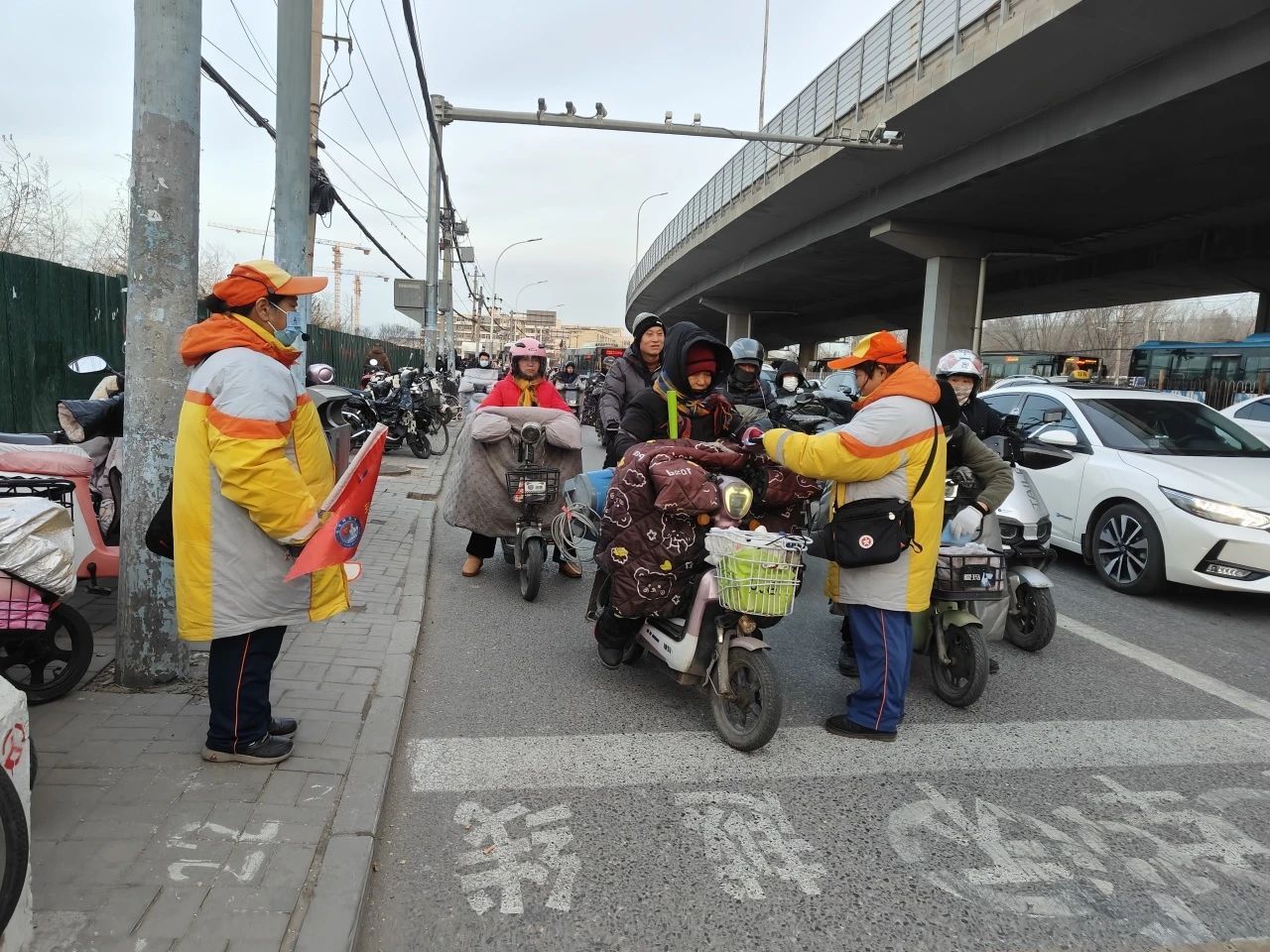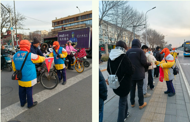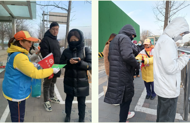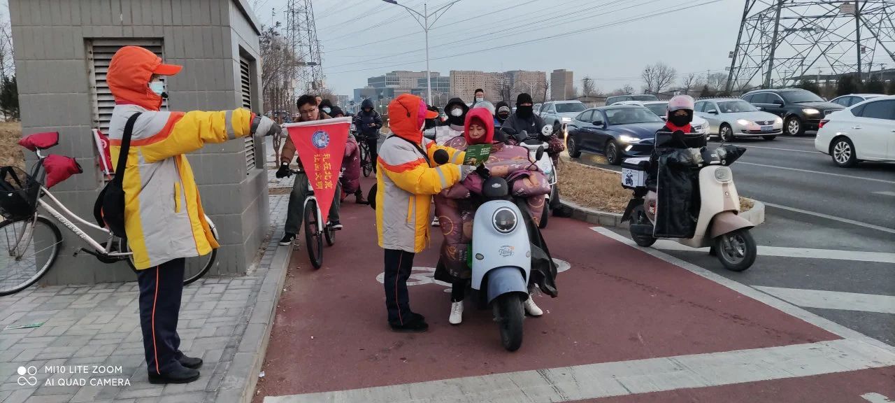 霍营中队引导员在地铁回龙观东大街站台开展控烟条例宣传,还在龙锦一街路口宣传文明过路口礼让斑马线,向路人发放“绿色出行 文明出行 有序停放”宣传折页。