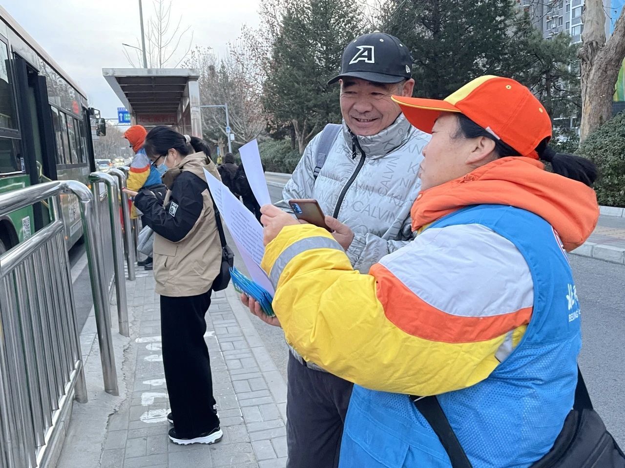 12月11日是2024年最后一个公共文明引导日,恰逢周三控烟宣传日,在昌平各个公交站台边,大家熟悉的文明引导员“小黄”穿上了控烟蓝马甲,文明引导与控烟宣传双 “箭” 齐发,带动文明昌平新风尚。