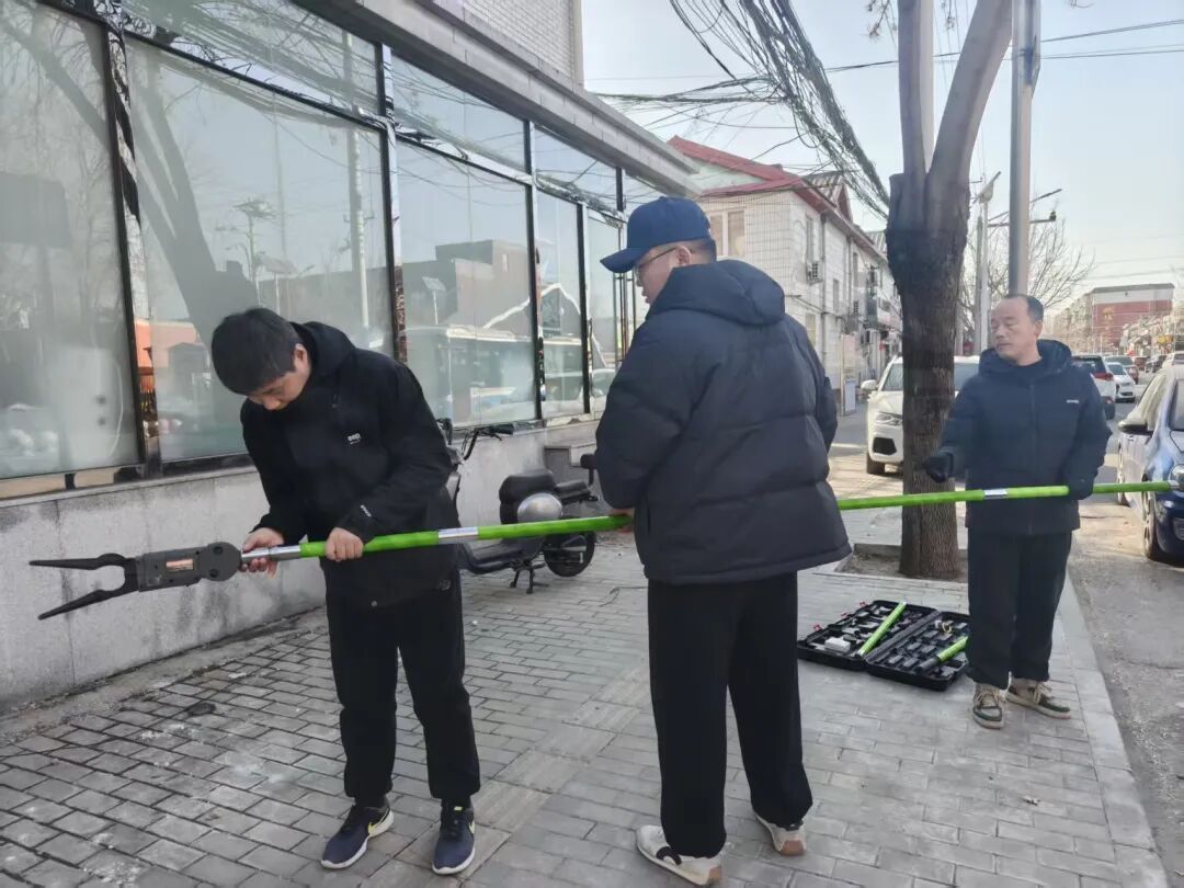 一天,西潞街道太平庄东里社区的工作人员接到了一通报修电话,社区工作人员立即赶赴现场,原来这是一根废弃的光纤网线,虽然找不到归属单位,但隐患却不可忽视。社区当即对接街道相关责任科室对垂落线缆进行集中梳理、捆扎牢固,物业工作人员也同步到场协助。