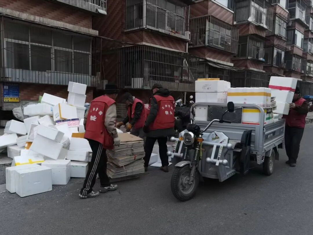 经过核实,明确易燃品为一位老年居民收集,便第一时间联系该居民的女儿女婿,对方表示会尽快清理。但临近春节,附近废品回收站已放假,清理一时卡了壳。但是群众安危等不起,社区随即协调物业公司及正常营业的废品回收站,组织人员集中清运。