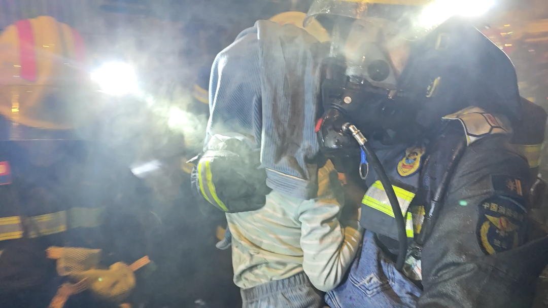 在成功救人的同时,灭火战斗也在紧张进行。5时35分,现场明火被彻底扑灭。消防救援人员随即利用排烟机对建筑内部进行排烟。6时31分,经反复细致排查,现场确认已无被困人员。目前,经调查火灾原因为线路老化起火后引燃厨房堆放的杂物。