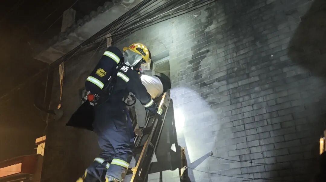 平房凌晨起火 消防员浓烟中救出6人_北京时间