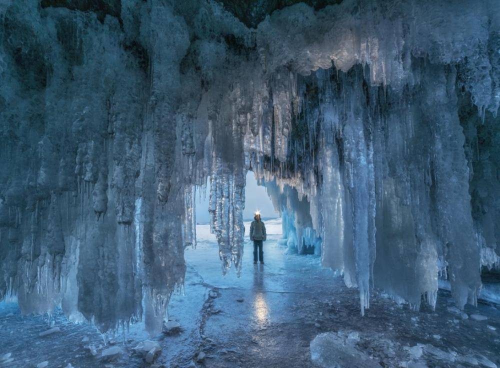 瑞士津纳尔高山村庄,津纳尔冰川末端形成的一个冰洞。