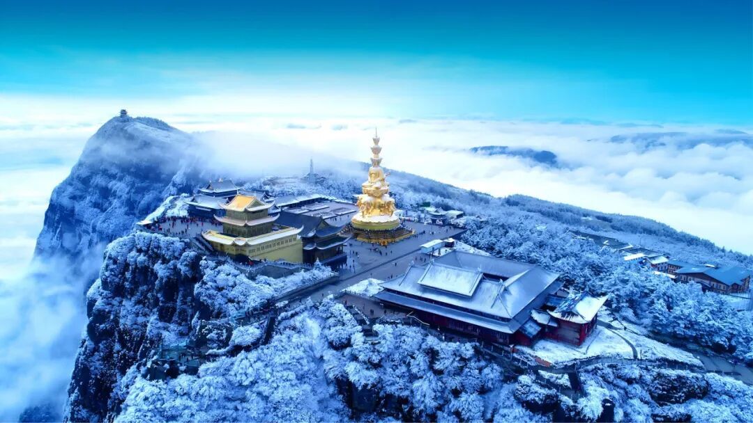 冬天的峨眉山,独特的冰雪风光兼具北国壮阔与江南灵秀。金顶白雪映圣像,朝阳云海交织成“金山银顶”的奇景;山腰雾凇银枝玉叶,风拂过漫天飞花,雪覆古寺红墙,禅意与静谧交融,宛如琉璃秘境。