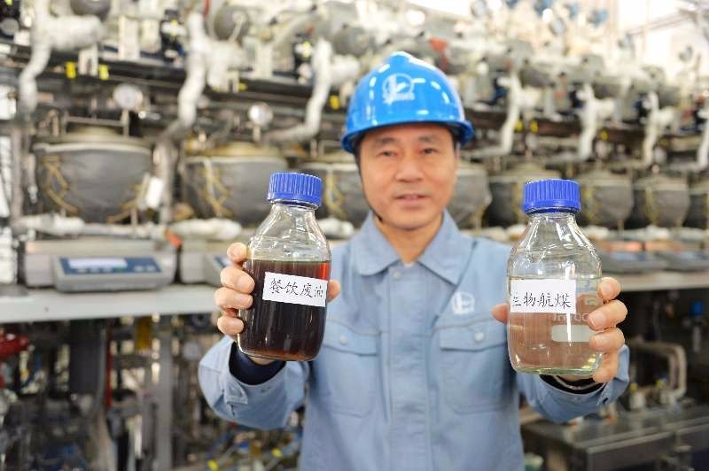 中国石化生物航煤生产技术适应的原料范围广泛,不但可以用菜籽油、棉籽油、棕榈油、酸化废油、微藻油、FT合成油等为原料,还能以餐饮废油为原料,解决了餐饮废油科学、合法、高效应用的难题,走出了一条餐饮废油资源化绿色应用的新路。中国石化将进一步拓展生物航煤原料来源,持续提升技术水平和产品竞争力,为航空业减排增效提供可靠的油品解决方案。