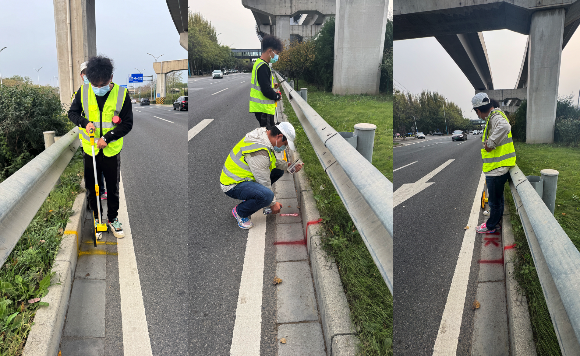 “赛道丈量”,是马拉松赛事筹备的关键一环,直接关系到赛事的专业性和公平性。作为赛道的“先行者”,丈量小组身着醒目的反光衣,骑着装有琼斯计数器的公路自行车从起点出发,配合轮尺、自喷漆、公里数模具等辅助工具,对赛道长度进行了精准测量。他们一丝不苟,精心测算,反复核对,为平凡的“道路”赋予了速度与梦想的刻度,展现了对参赛选手的尊重和对体育精神的执着追求。历经四个小时奋战,丈量工作顺利完成。