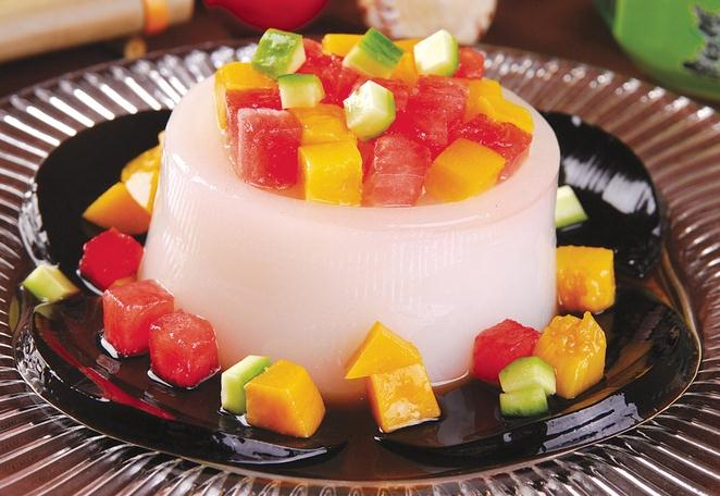 制作杏仁豆腐主要用甜杏仁磨浆后或者用杏仁露加水煮沸,待冷冻凝结之后切块而成。将琼脂放入冷水中浸泡5分钟,然后加热使其溶化。将牛奶、杏仁露、白糖混合后中小火慢慢加热至微微起泡后离火。把琼脂液倒入煮好的杏仁液中混合均匀,然后倒入容器。