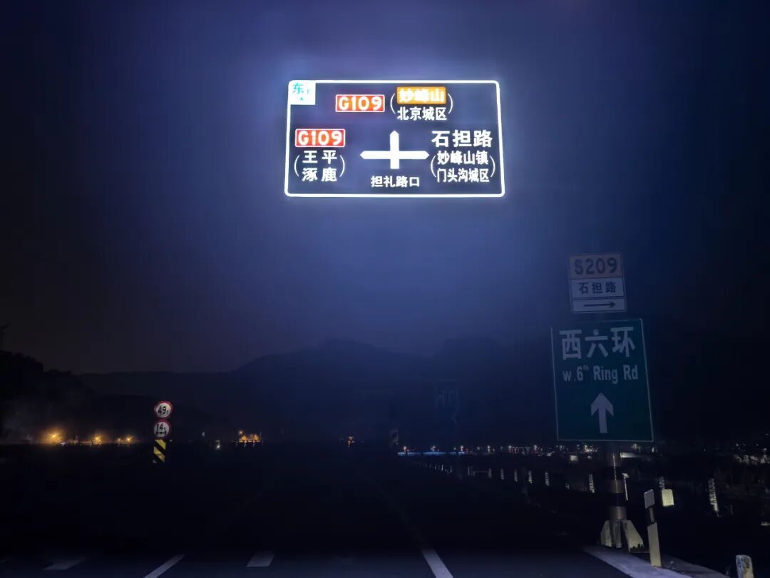 传统指路标志依赖反光材料,在夜间、雾霾或雨雪天气下辨识度骤降。在G109国道灯光差、易走错的路段,公路分局率先应用主动发光指路标志,通过内置高亮度LED光源,实现标志内容“自发光”。