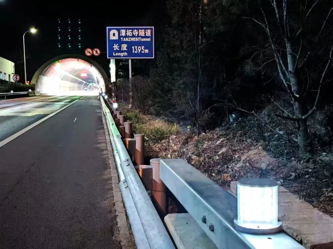 山区公路隧道进出口光线变化大,特殊情况下视觉辨识轮廓困难。针对这一风险,门头沟公路分局在隧道口布设发光轮廓标,通过连续的主动发光线条勾勒道路入口轮廓。