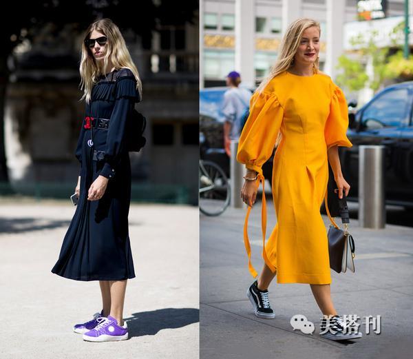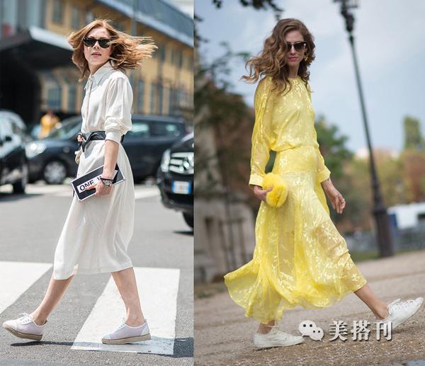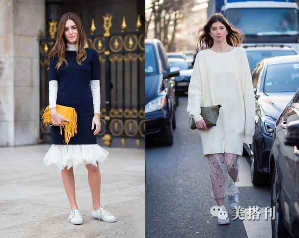 ▲如果你是高个子小仙女,可以尝试这火热的小白鞋搭配长袖连衣裙,肯定让你美上天,再配上一个时尚的手拿包包,女神既视感立现。