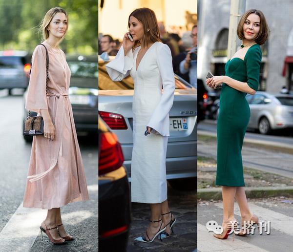 ▲富有女人味的高跟鞋搭配连衣裙,这是没得说的,是一对绝佳的组合,只要是连衣裙我们第一时间想到的都是高跟鞋,相似风格的两件单品搭配起来是毫无违和感的,当然高跟鞋穿起来也会比较累,小个子姑娘如果必须要用高跟鞋增添高度的话,也可以选择粗跟的,穿起来相对舒适一点。