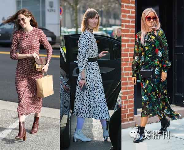 ▲短靴在秋冬季节是最实用最百搭又最受欢迎的单品了,搭配连衣裙是时尚icon的常见装扮,气场强大,酷感十足,又带着点优雅味道,再配上一款气质手提包,女神的feel立马就很足。