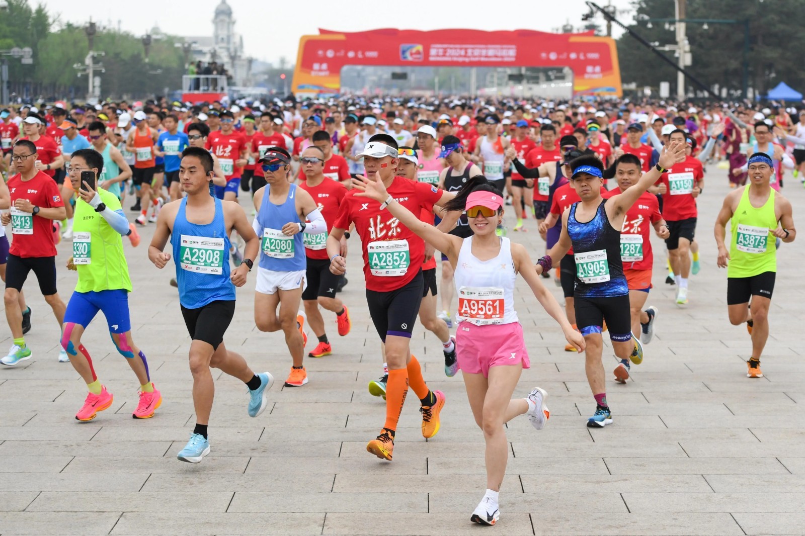 4月14日7时,2024北京国际长跑节——北京半程马拉松在天安门广场鸣枪起跑,赛事设置男、女半程马拉松项目,参赛规模达20000人。