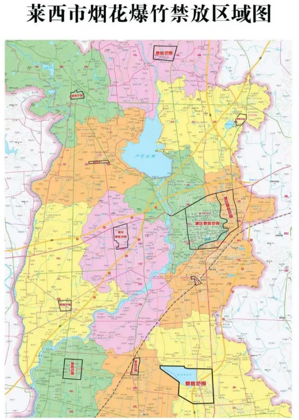崂山区、城阳区、黄岛区、即墨区、胶州市、平度市、莱西市公布的禁放区如下: