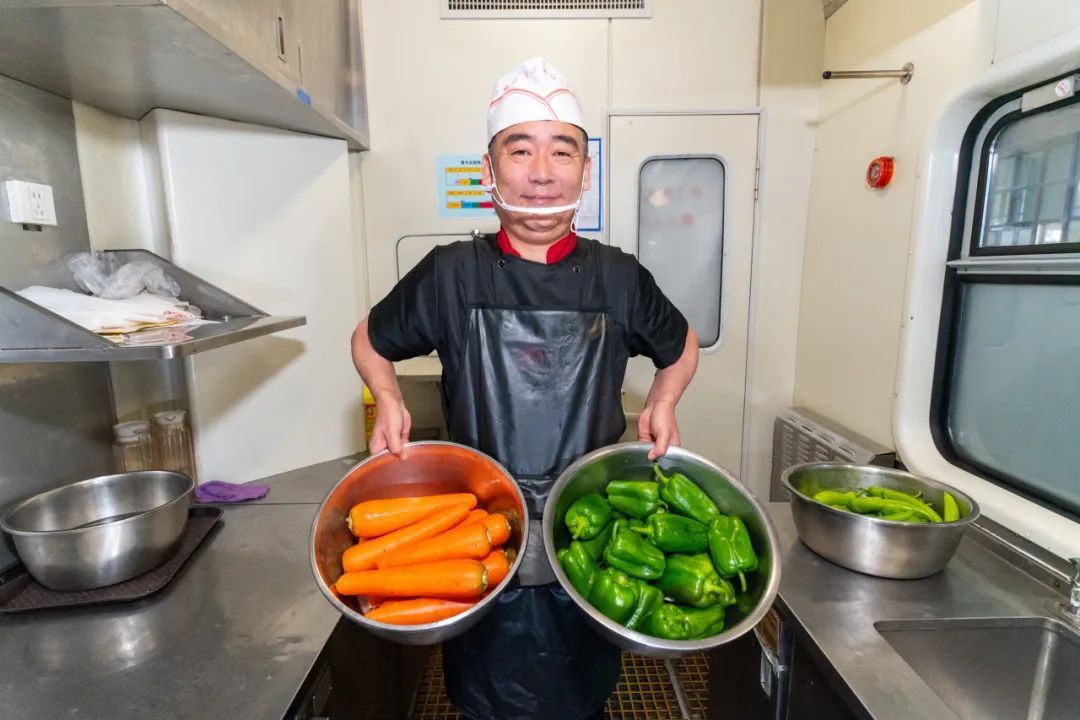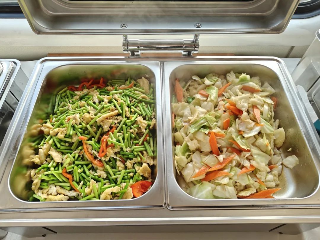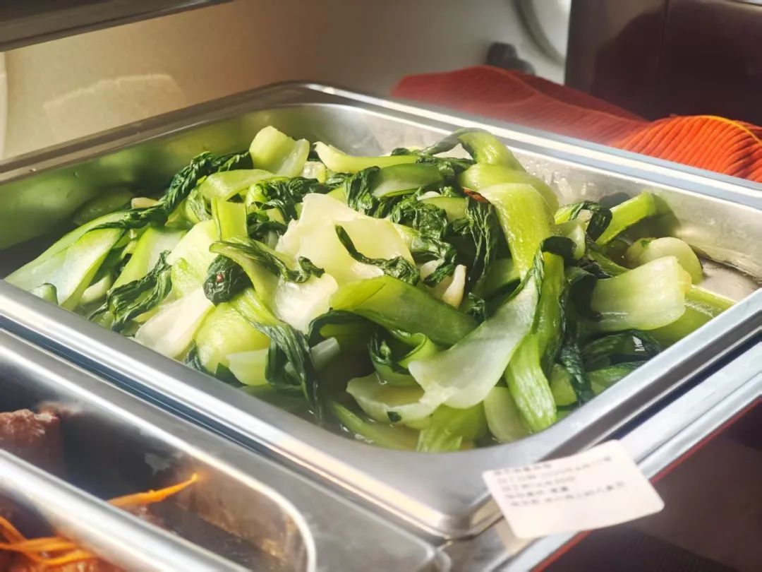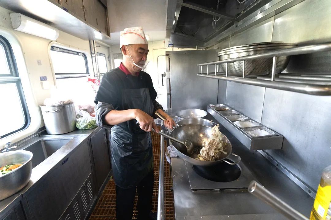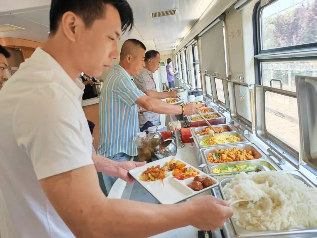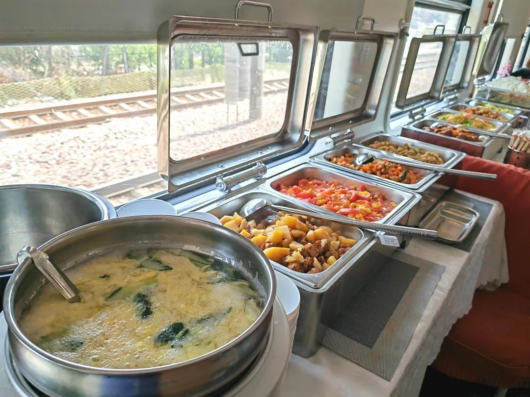 列车上的自助餐,融合南北风味,营养丰富荤素搭配,现炒现做,“锅气”十足,让旅客在列车上也能享受 “移动餐厅” 的服务。