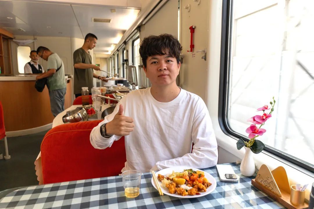 列车自助餐的价格设置十分亲民。早餐25元一位,午餐和晚餐均为35元一位。