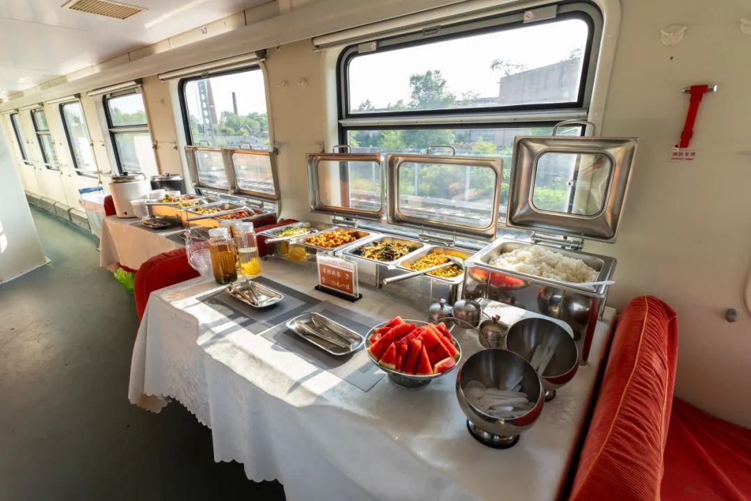 近日,中国铁路沈阳局集团有限公司在长春至西安的K128/125次列车上,也推出了火爆出圈的自助餐餐饮服务。