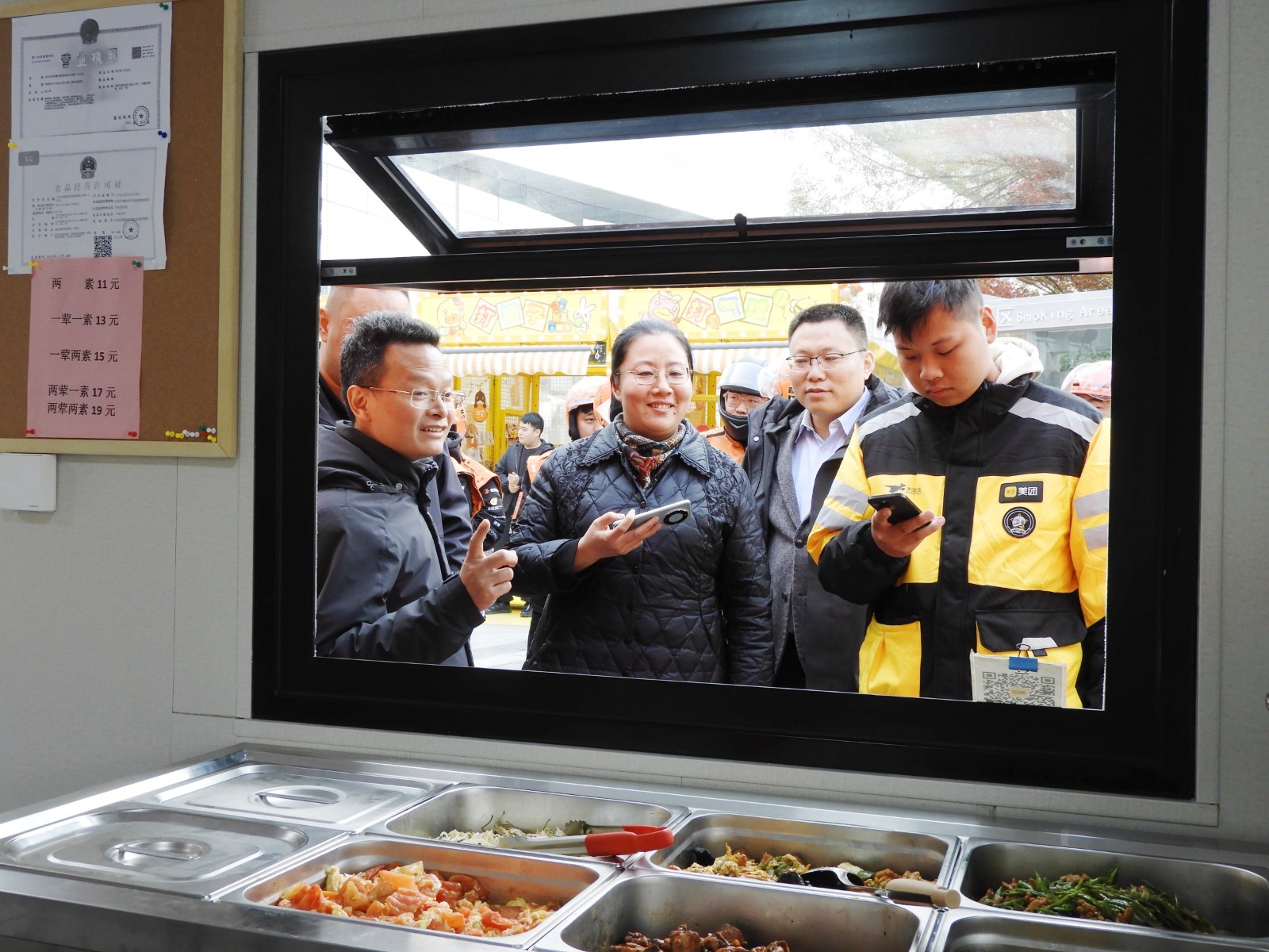 走进驿站,“北苑小哥之家”的暖心细节更是随处可见:长桌上纸巾、插座摆放有序,空调、饮水机、微波炉等设备崭新齐全,便民角里医药箱、工具箱、健康仪、一次性雨衣等物资一应俱全,餐食区每日可提供三荤三素平价菜品,色香味俱全,广受好评。
