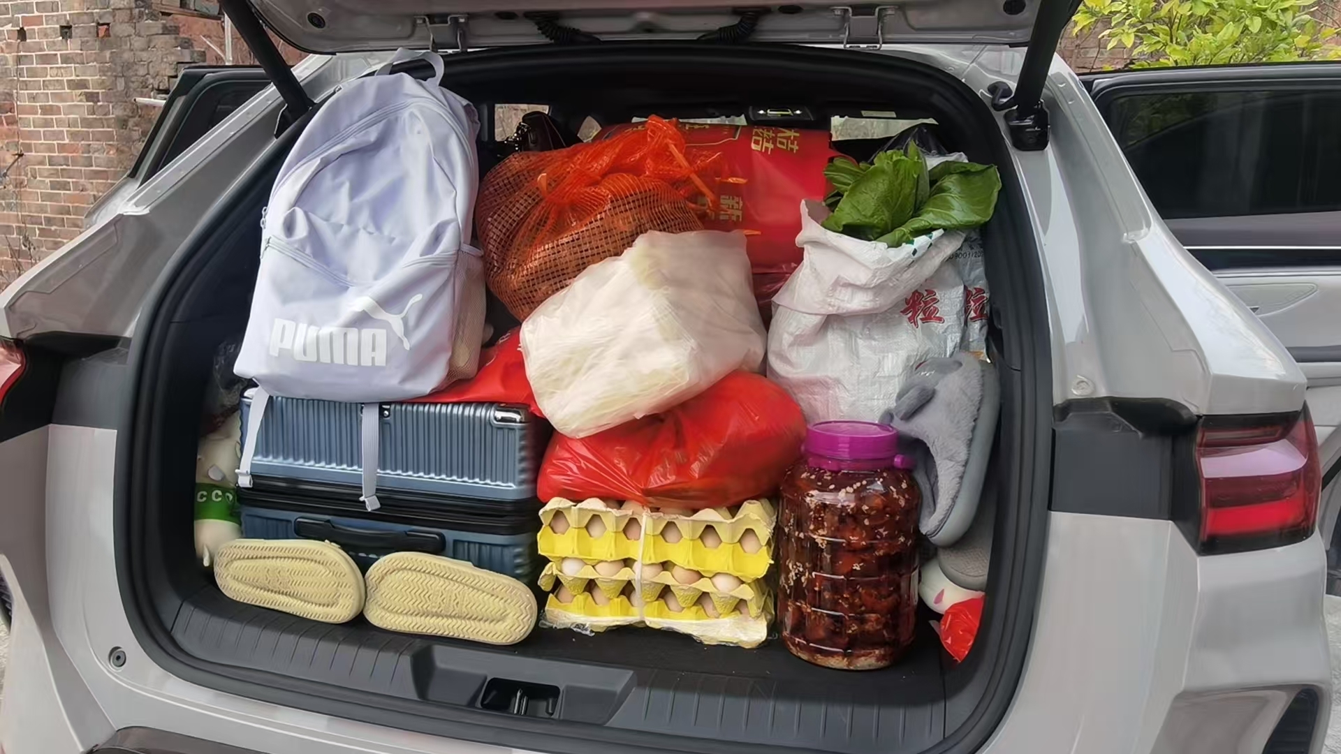 满满的后备箱。