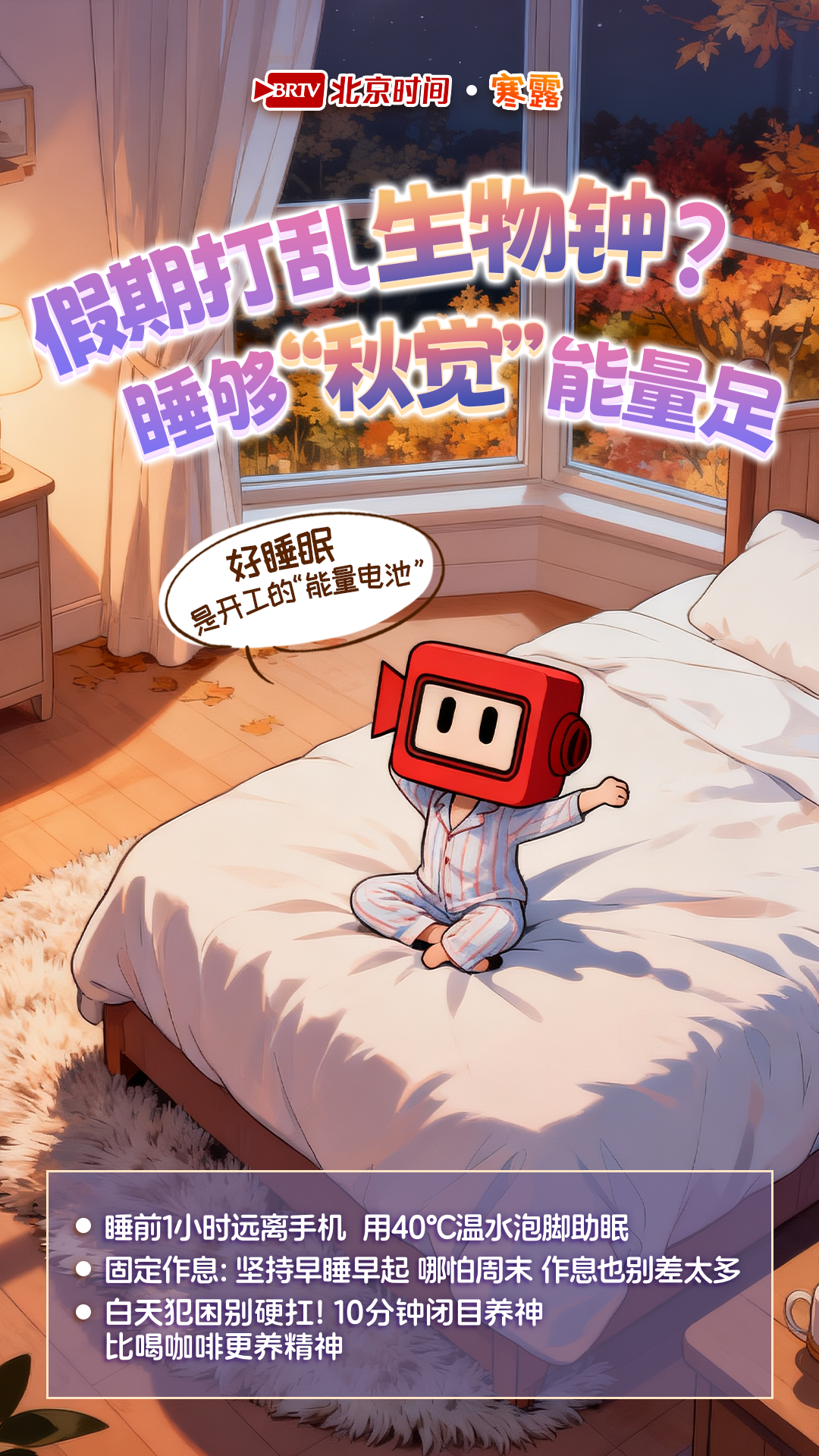 今日寒露,明日开工。把养生融入工作日常,让你元气满满,从容前行。从饮食到作息,从防护到情绪,8个养生小细节,让你既能做好工作,也能抚平假期尾声的焦虑。带着好状态开工,焦虑不再,效率翻倍!