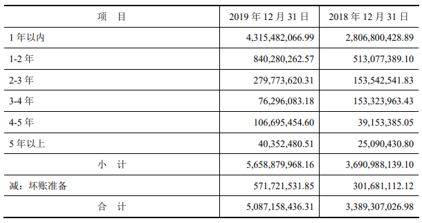 从账龄来看,一年内新增的应收账款为43.15亿,占全部应收账款的3/4,相当于2019年全年营收的43%。