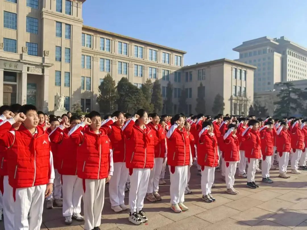 活动伊始,同学们在军博南广场进行了庄严的宣誓仪式。同学们身着校服,整齐列队,神情庄重。在国旗下,全体师生举起右拳,庄严宣誓:“我热爱祖国的每一缕阳光,我热爱祖国的每一寸土地,我热爱祖国源远流长的历史……”铿锵有力的誓言响彻广场,振奋人心,展现了新时代青少年的爱国热情与责任担当。