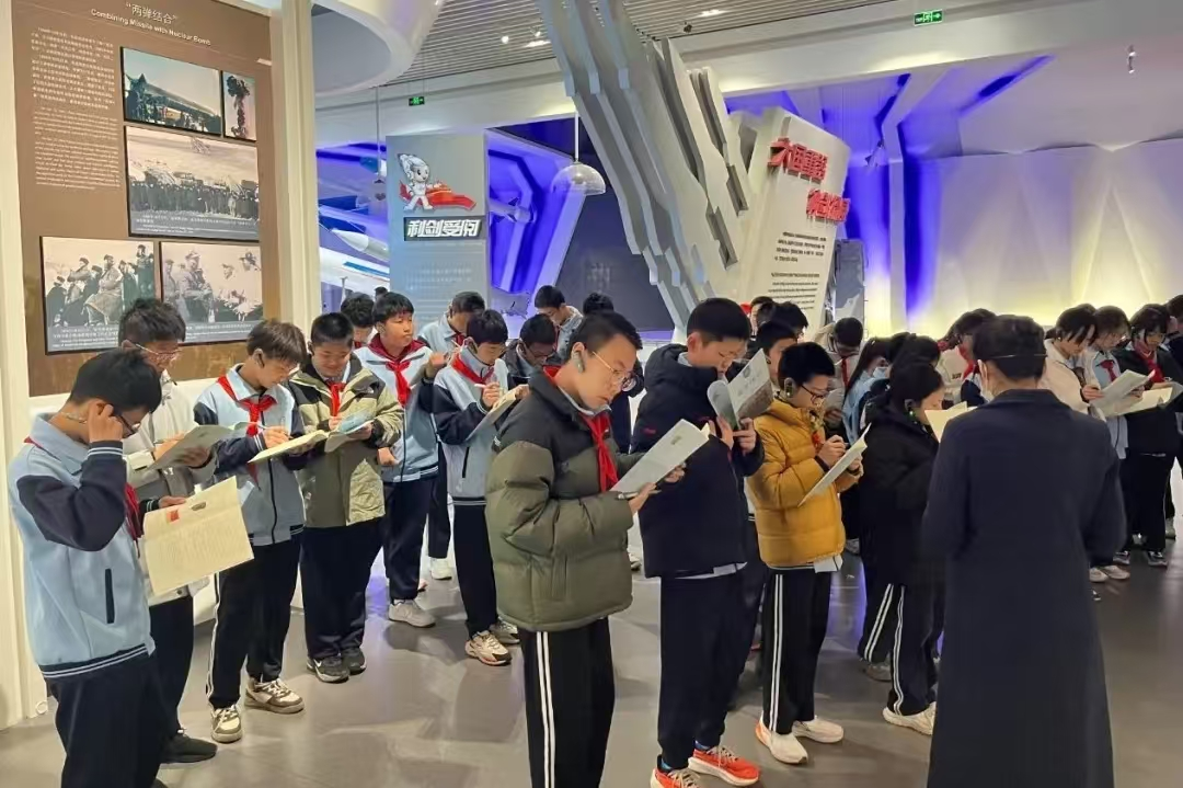 展厅内,一件件文物无声诉说着历史的恢弘厚重。讲解老师为同学们讲述了文物背后感人至深的故事:有舍生忘死、为国家和民族利益奉献一切的英雄模范;也有不畏艰难、攻坚克难、默默奉献在国防科研一线的科学家。这些动人事迹中彰显的爱国精神、奉献精神和勇敢无畏的品质深深激励着每一名同学。大家纷纷表示,“七个一”活动是一次生动的国防教育课,更是一次对英雄精神的传承之旅。