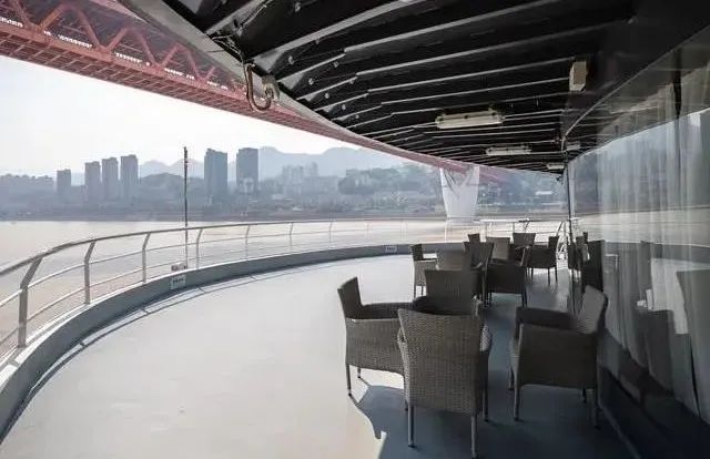 将游轮的内部空间、外部空间及长江两岸的景色完美融合,形成一道流动的风景线。