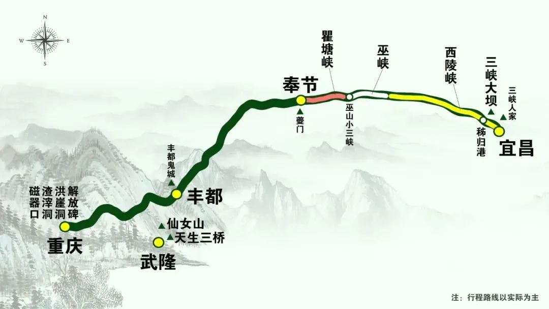 船陪及当地导游服务(火车上不配备导游;宜昌及重庆行程为分段导游)。