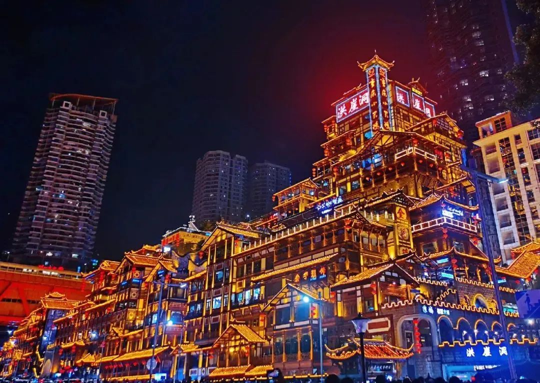 中餐后车赴山城,参观重庆标志【解放碑】(约1小时)。外观西部第一高楼【重庆环球金融中心WFC】,打卡网红景点【洪崖洞】(约1小时)。欣赏夜幕下璀璨迷人的“洪崖洞夜景”, 江边的“吊脚楼”与山上的高楼大厦层见叠出,错落有致,如梦如幻,仿佛现实版的《千与千寻》。晚餐品尝“重庆正宗江湖菜”。