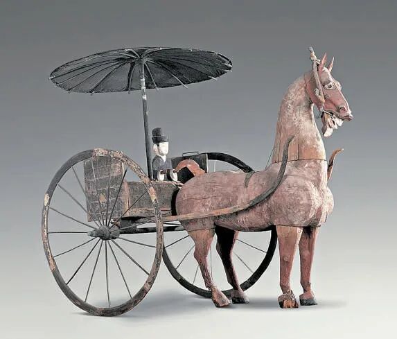 木雕之马,雄健永恒。甘肃省博物馆的汉代彩绘木轺车,其马匹结构精妙,头、颈、躯、腿、尾分制,再以榫卯精巧结合,施以红、白、黑三色彩绘,风格雄浑古拙。它不仅是汉代高超木工技艺的见证,更是彼时恢宏气象与丝绸之路历史的立体记录。
