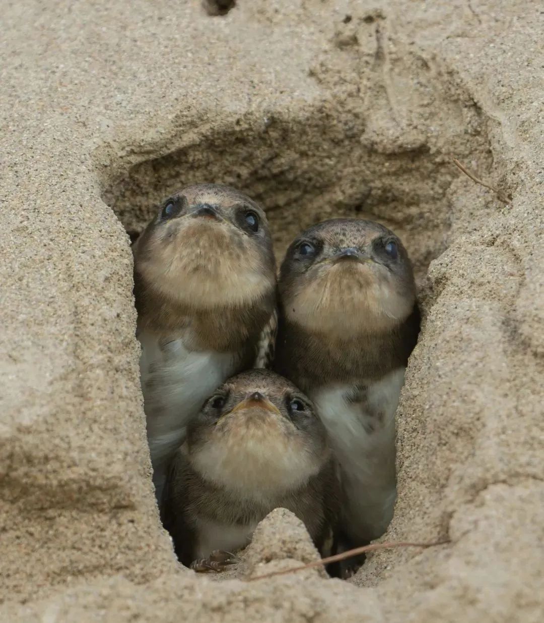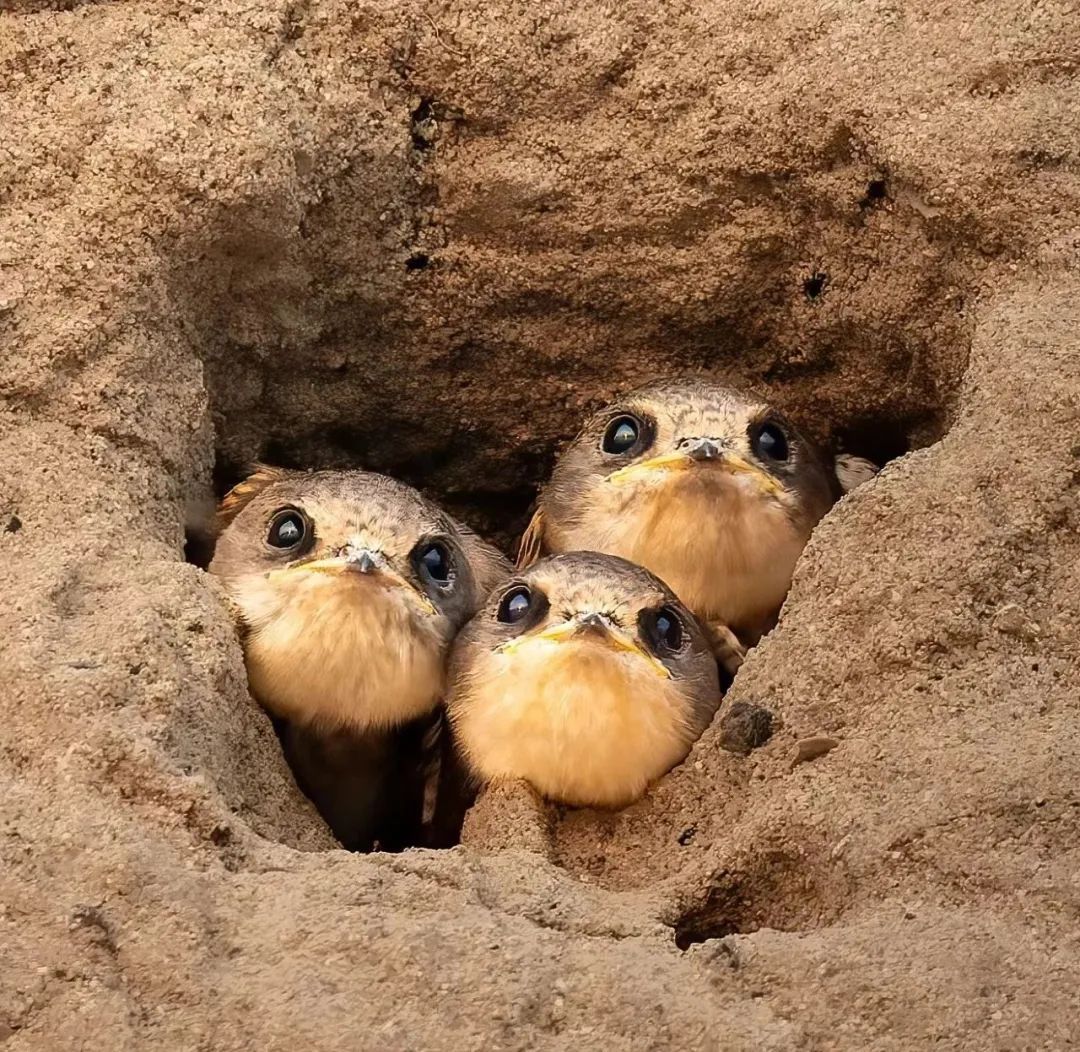 在永定河特大桥往南300米左右,有一处细沙崖壁。在这处细沙崖壁上有大大小小150个左右的圆洞,圆洞里挤着毛茸茸的小脑袋,这些圆洞就是崖沙燕的巢穴。